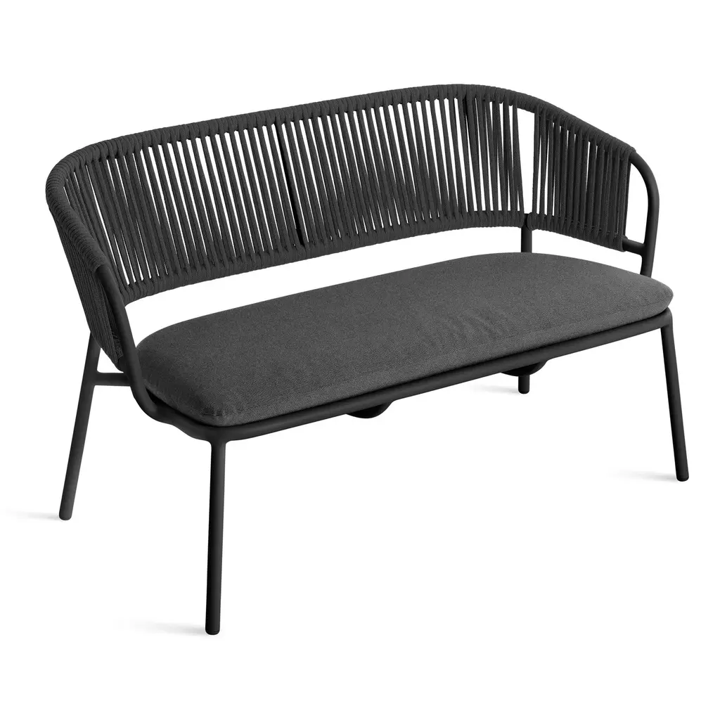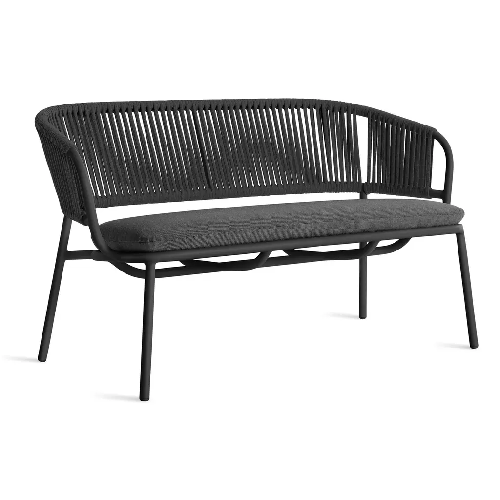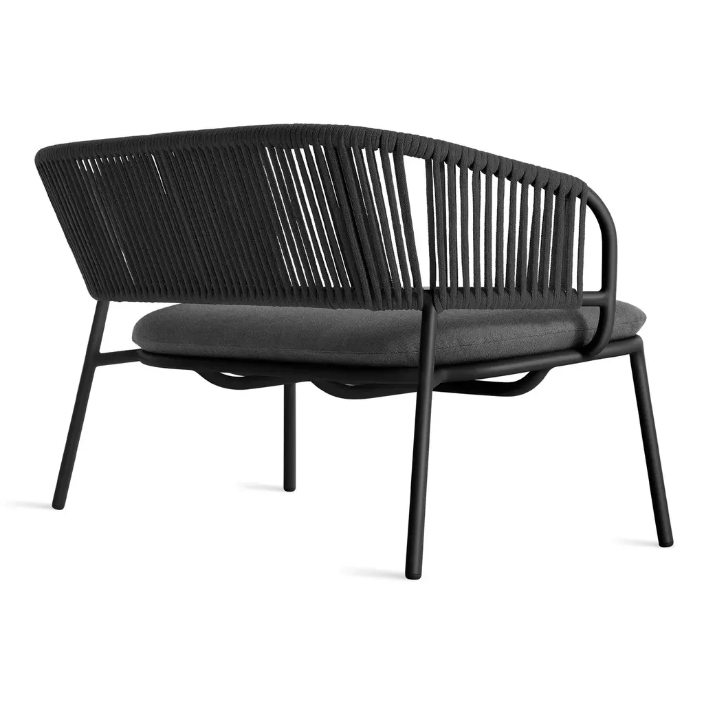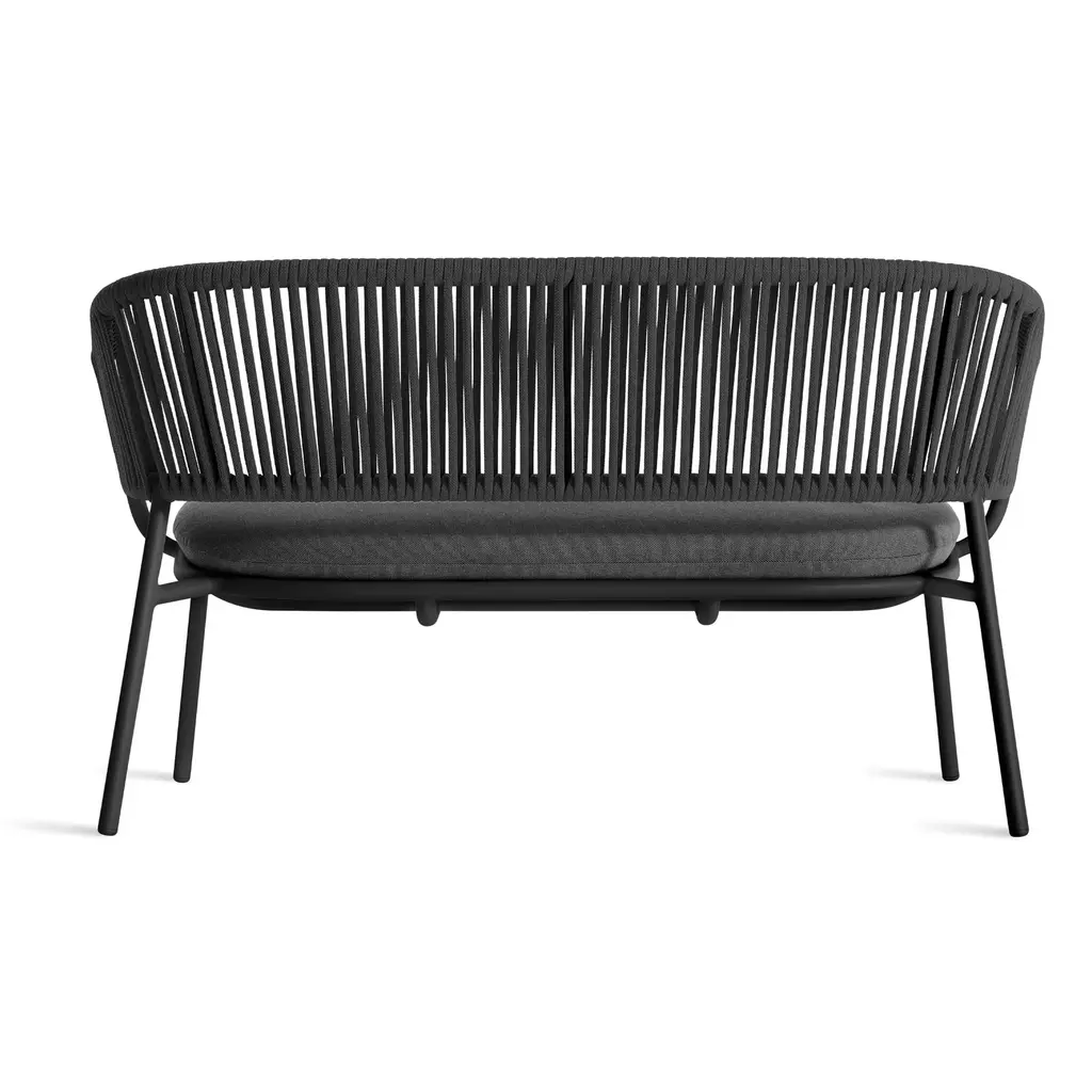 Even better with a buddy. Woven all-weather rope wraps a tubular aluminum frame to create a balance of texture, comfort and resilience. Sunbrella ® upholstered seat cushion is UV- and mildew-resistant. Proportioned for relaxation.