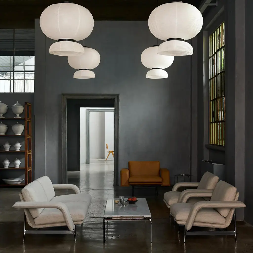 A distinguished silhouette meets welcoming comfort in the Meantime sofa by Anderssen & Voll. Featuring wide, forward-reaching yet slender arms, Meantime's form is reminiscent of furniture found in the liminal spaces of transport waiting rooms. Through carefully considered proportions, a sense of optical weightlessness is achieved, resulting in a design that balances visual impact with a properly supportive seat.