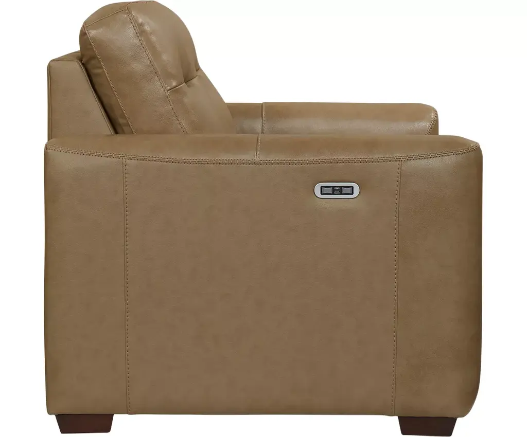 Cozy up to your favorite person or sprawl out on our comfy, spacious Melbourne loveseat. This beautiful, sleek piece is wrapped in top-grain leather, and high-density cushions with a power headrest and recline come together for optimal comfort. Clean lines and a tight back design add a contemporary addition to any room. Professional installation recommended.