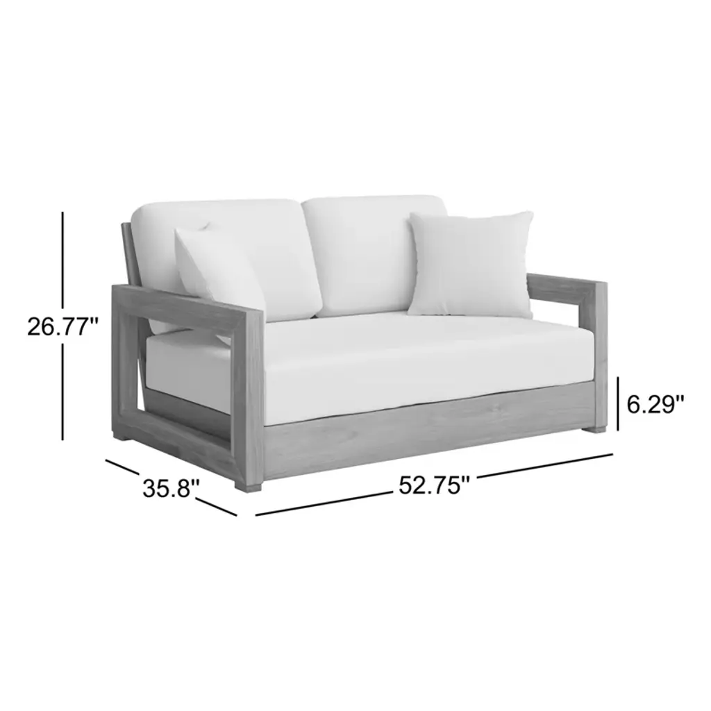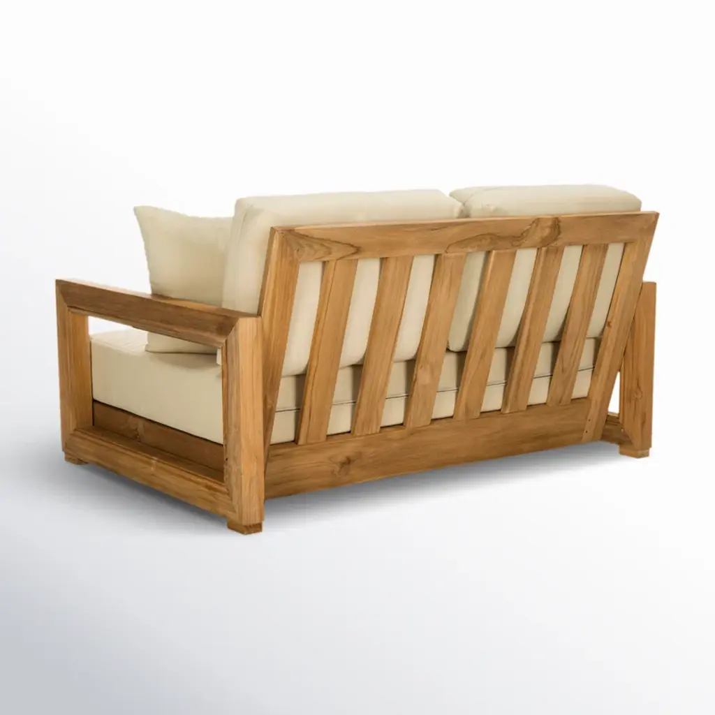 Perfect for the space-conscious patio, this 2-person loveseat is a great spot to enjoy any season. It's made from solid teakwood that’s naturally resistant to weather, water, stains, and fading. We also love the variations in the wood grain for a rustic-inspired touch. Resilient polyester cushions are padded with foam for just-right support, while two accent pillows tie the look together. The cushion covers are also removable. Just unzip them and toss into the washing machine when they need a quick clean.