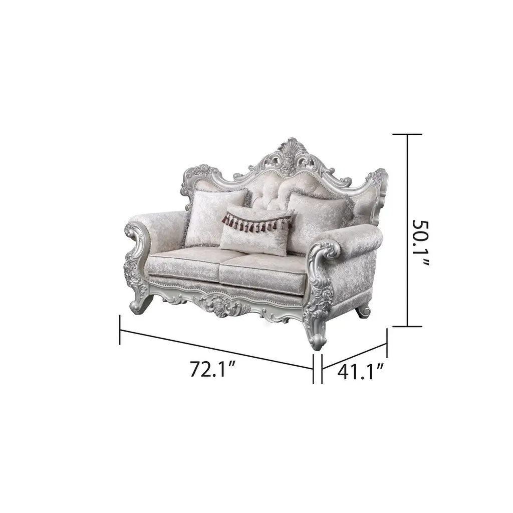 Melrose Traditional Style Loveseat Made With Wood & Silver Champagne Finish - Silver