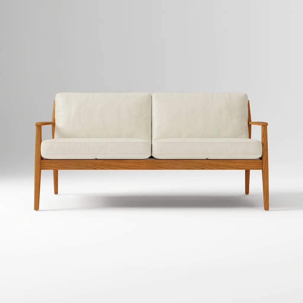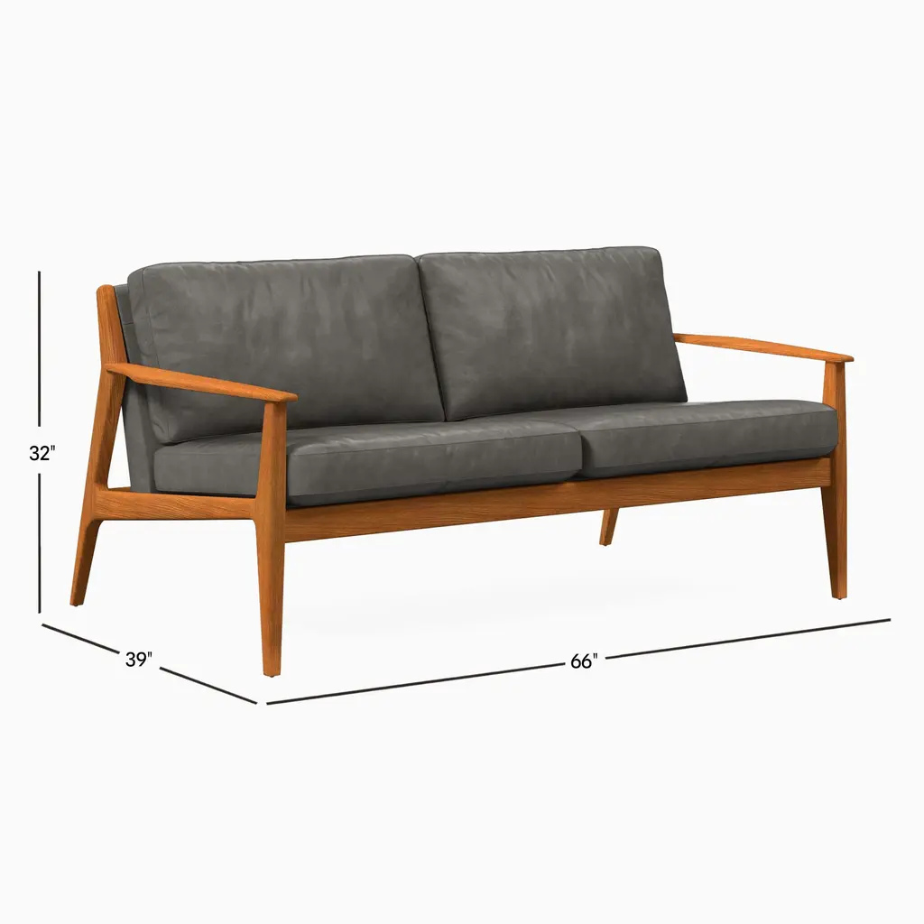 Mid-Century Leather Show Wood Sofa (66")