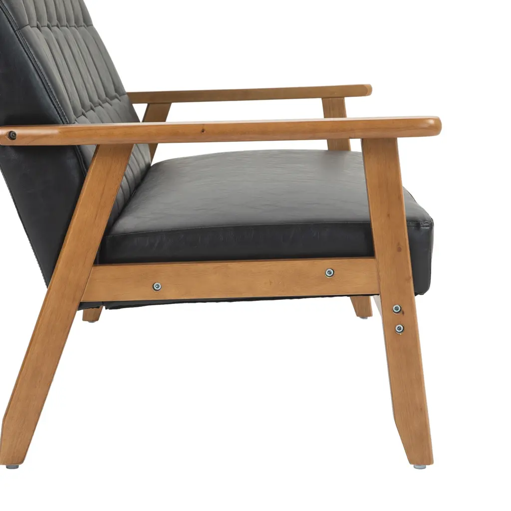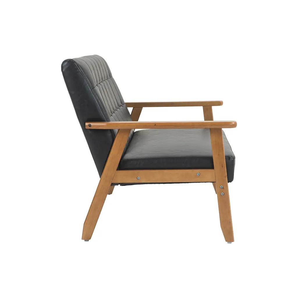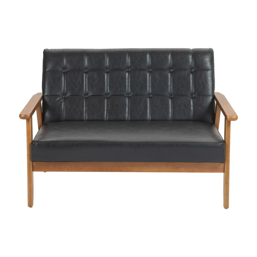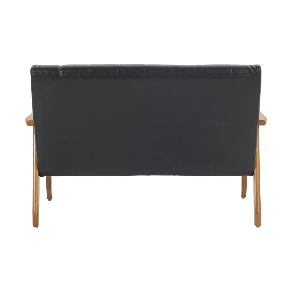 Mid-Century Modern Solid Loveseat Sofa Upholstered Pu Leather Loveseat, 2-Seat Upholstered Loveseat Sofa Modern Couch - Black Pu