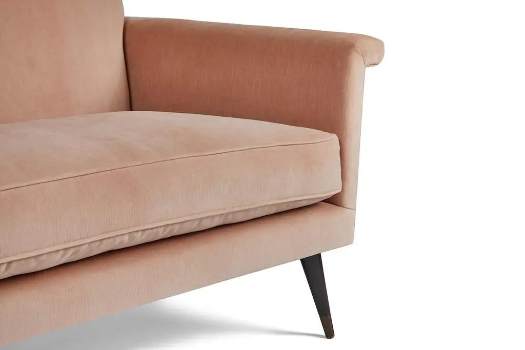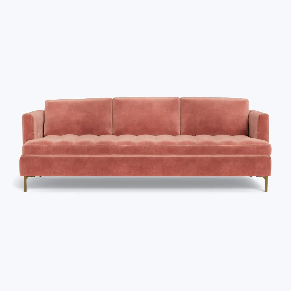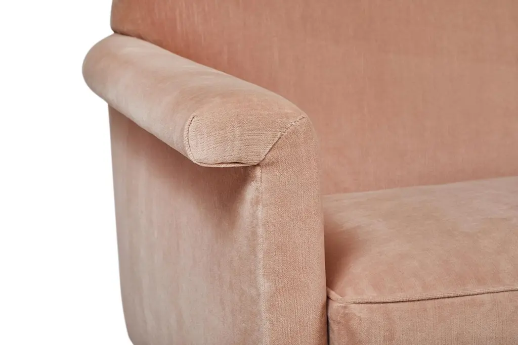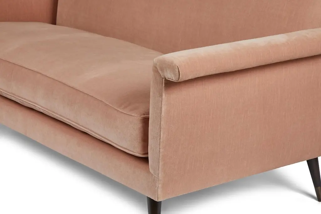 Martin & Brockett’s Jolly Sofa 72” is inspired in equal part by Italian modernism, streamlined comfort and the charming open-air beach car it’s named after. It’s elegantly folded edges meet a tight upholstered frame, loose bench seat cushion, and tapered legs with brass caps.H 34 in. x W 72 in. x D 36 in.Sold as C.O.M. only- 12 yardsPart of our Jolly Collection.Lead time: 9-10 weeks.