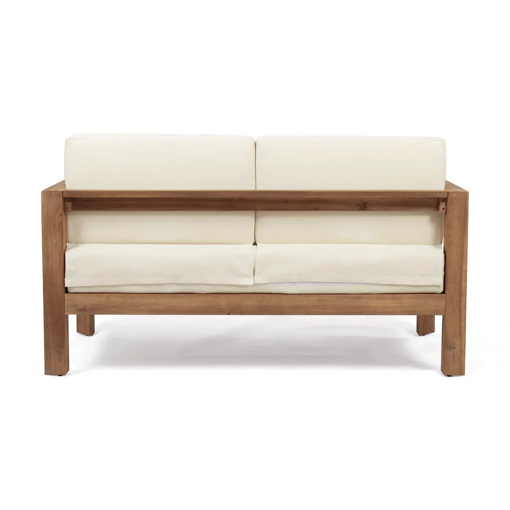 Mid Century Modern Two-Seater Loveseat & Coffee Table ,Backyard Or Patio 2 Seater Loveseat Sofa Sets - Beige+brown