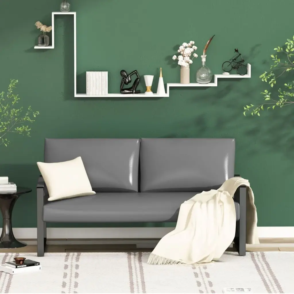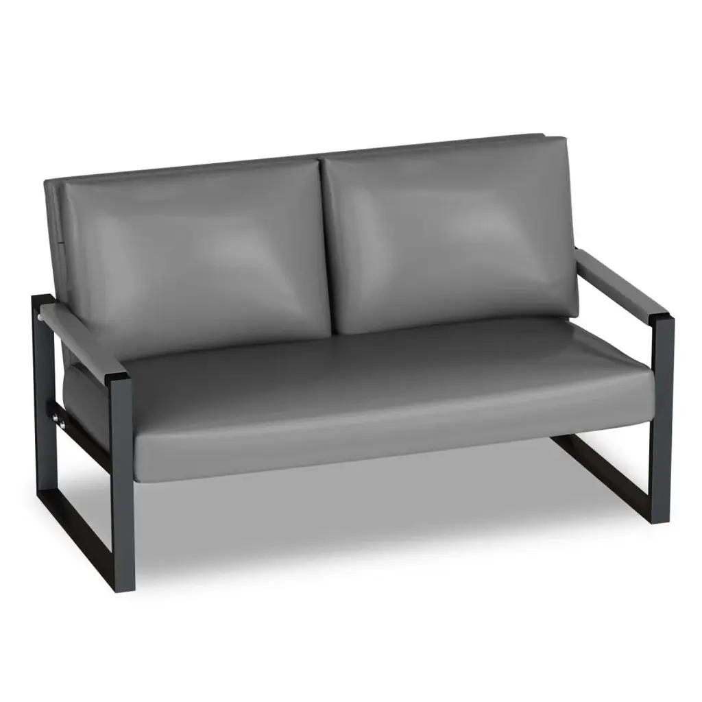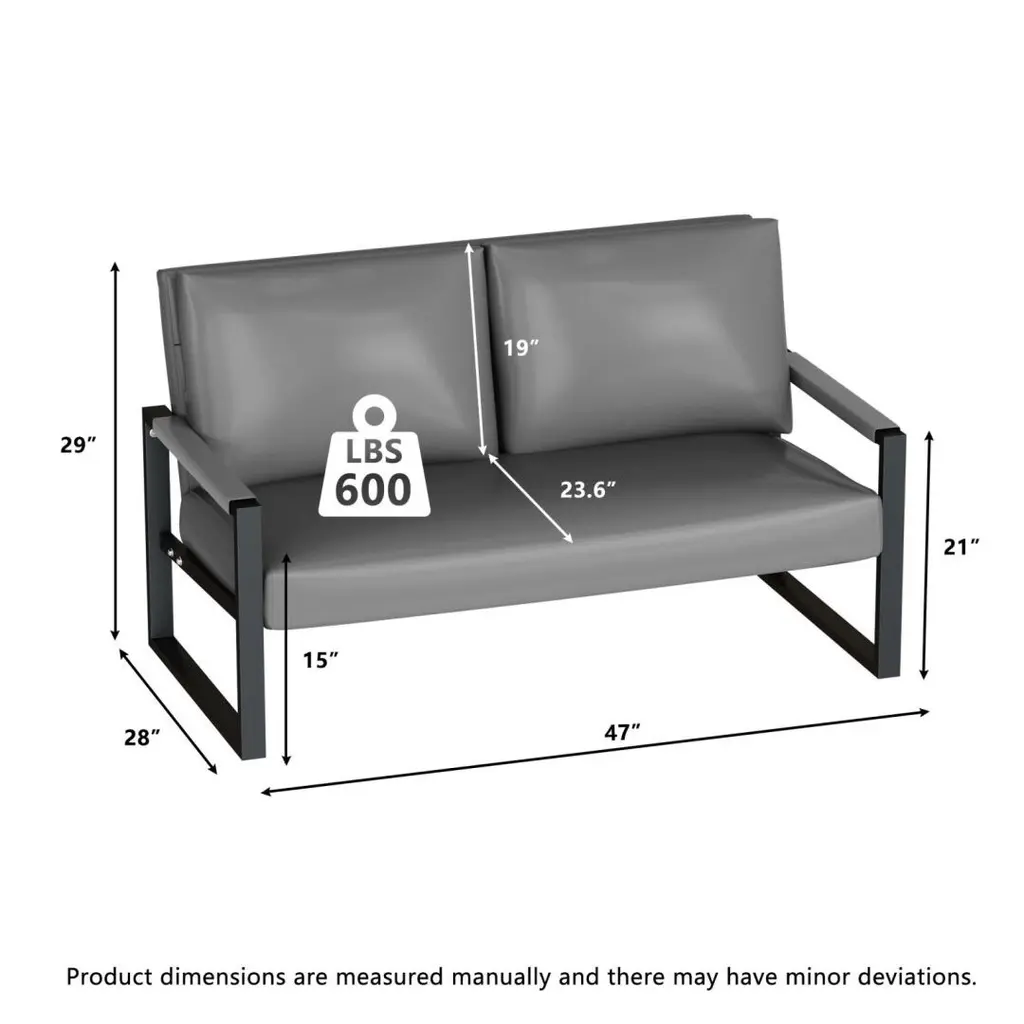 Mieres Mid-Century Style Faux Leather Loveseat Sofa With Steel Frame - Gray