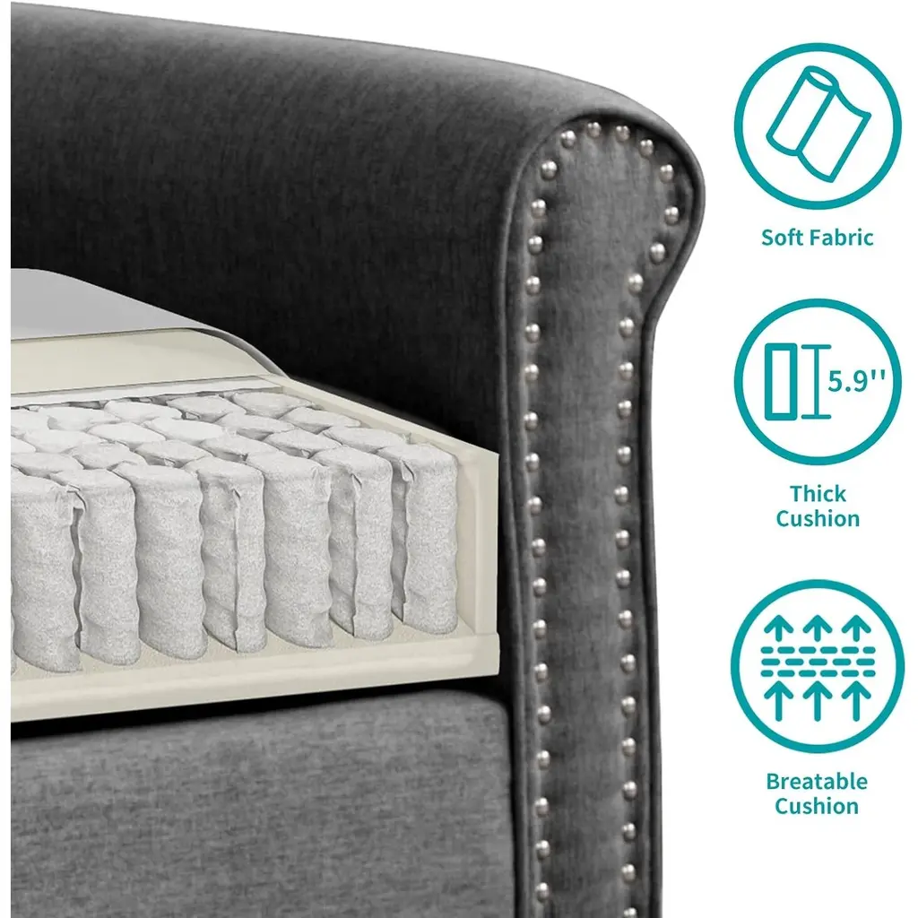 💕【Sturdy and Durable Structure】The entire sofa frame is made of high-quality solid wood, and each joint is reinforced with rivets to prevent easy collapse, very sturdy and durable. The sofa legs are also made of solid wood material, which is very stable and has a certain degree of anti-slip property, preventing easy shaking. 💕【Premium Fabric】The fabric used on the surface of the sofa is made of fine linen, which comes from a pure natural herbaceous plant. It is very comfortable and has high breathability and skin-friendly properties. Even in hot summer weather, you won't feel excessively hot when sitting on it. Moreover, as the raw material is processed from natural plants, it will not cause any harm to the human body, so you can use it with peace of mind. 💕【Excellent Sitting Experience】The backrest is filled with sponge, while the seat cushion is filled with sponge and spring package, providing high resilience and softness. The armrests have a solid wood structure with a thin layer of sponge filling in the middle, providing appropriate height and allowing you to relax your arms when you sit in the comfortable backrest and seat cushion. 💕【Sleek and Stylish】The design of the entire sofa is very simple, giving a comfortable and homely vibe. There are three color options for you to choose from: dark gray, light gray, and beige. All three colors are low saturation colors, making them suitable for various home decor styles. In addition, this sofa can be DIY combined according to your preferences or your home decoration. 💕【Easy to Assemble】 We have equipped this couch with a dedicated necessary tools and instructions, and you can easily follow to assemble. During this process, if you encounter any difficulties, our customer service team is available at any time to provide you with assistance and solutions. 💕【Note】During the transportation process, the courier package may compress the sponge. After receiving the package, you can leave it for 48-72 hours to restore its original state. It is recommended to wait for 72 hours as the optimal duration.