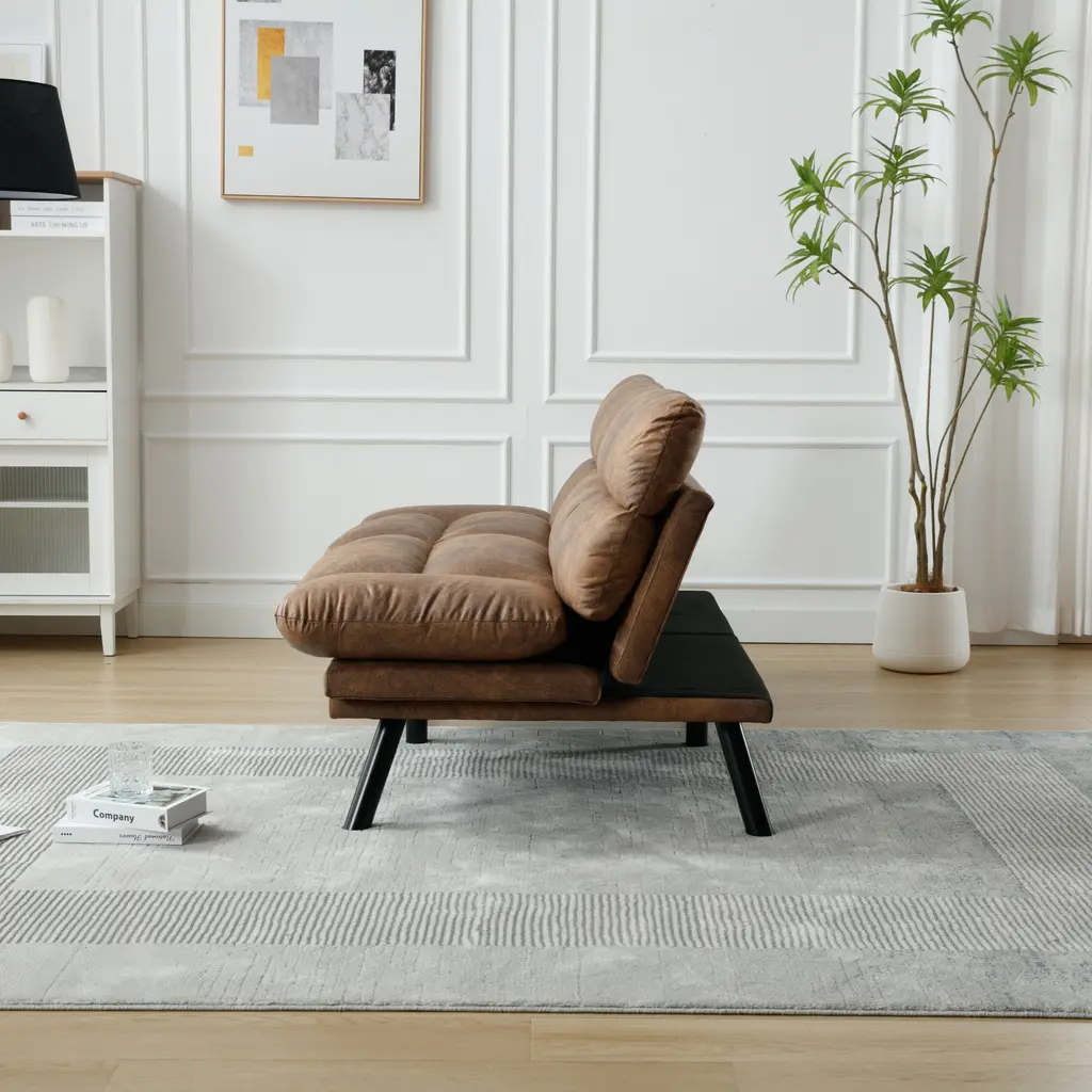 Product Features1.Product Dimensions: 70.08" W x 29.53" D x 31.5"; 80.36 lbs. Seat: 50" W x 20.08" D x 18.11" H in.; Seat back: 16.14" H. Weight Capacity: 600 lbs.2.Sturdy Construction: The microsuede sofa features a high-quality wood frame and high-elastic S-shaped springs, providing a sturdy foundation that can support up to 600 pounds. The 6 metal legs further enhance the sofa's stability and durability.3.Ultimate Comfort: Crafted with breathable and skin-friendly microsuede fabric, this sofa offers a comfortable seating experience. The high-density sponge filling ensures perfect support for your body, allowing you to relax and unwind.4.Modern Style: Add a touch of modernity to your home with the sofa set. The sleek design and black metal legs create a chic and stylish look that combines vintage flair with contemporary living. The microsuede fabric upholstery adds elegance and sophistication to your living space.5.Compact Size: The microsuede fabric sofa is designed to fit small spaces without compromising on comfort. With dimensions of 70.08" W x 29.53" D x 31.5" H, it provides ample seating while maximizing floor space in your living room, apartment, bedroom, dorm, or office.6.Easy Assembly: This sofa requires assembly, and all necessary tools and instructions are included for your convenience.