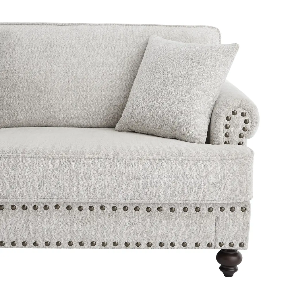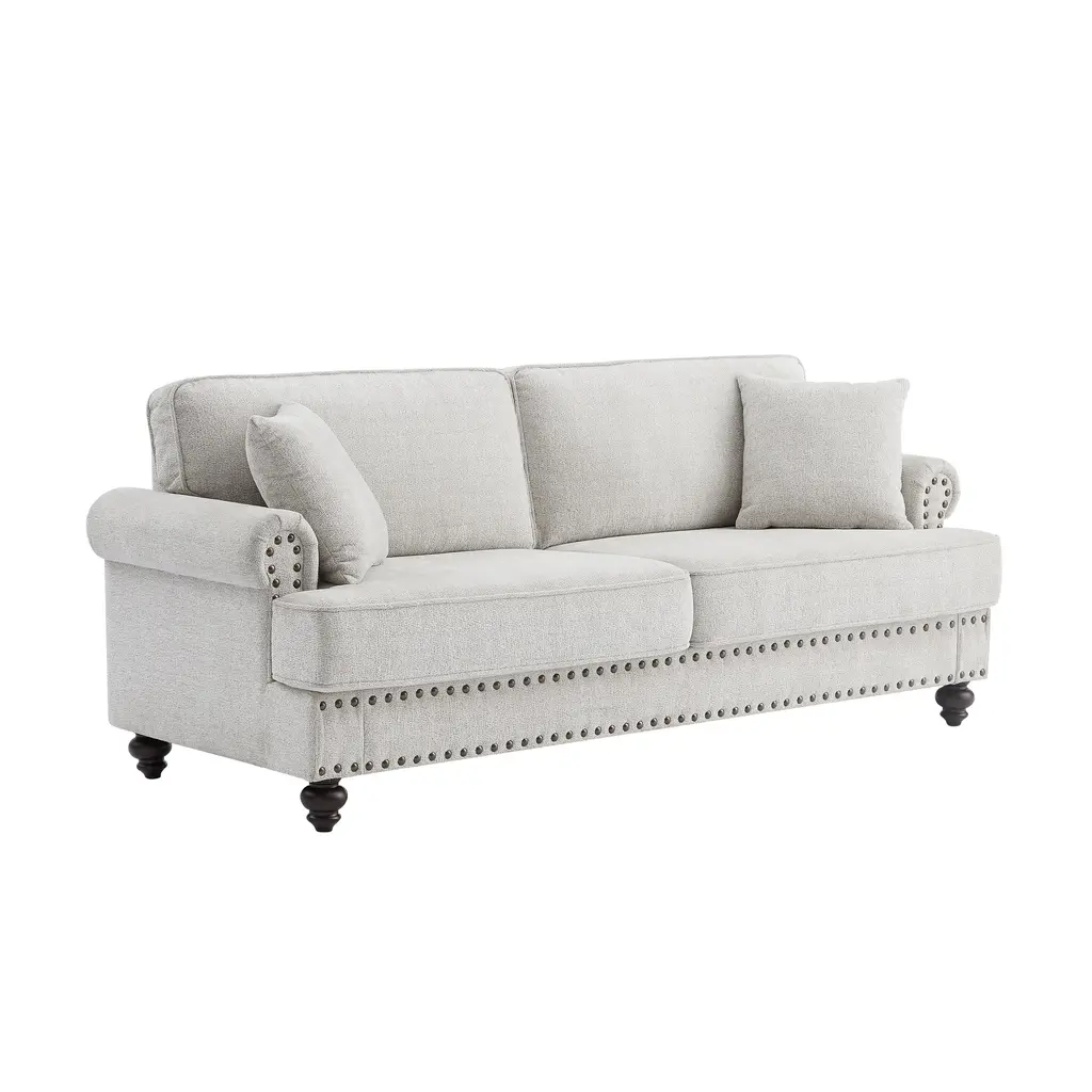 Modern 82" Chenille Fabric Sofa 2-Seater Upholstered Couches, Large Loveseat Sofa With Nails & 2 Throw Pillows For Living Room - White
