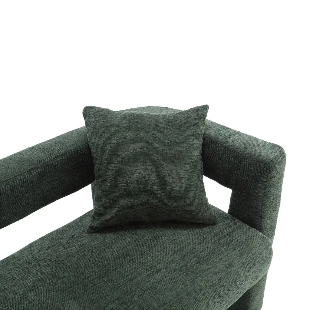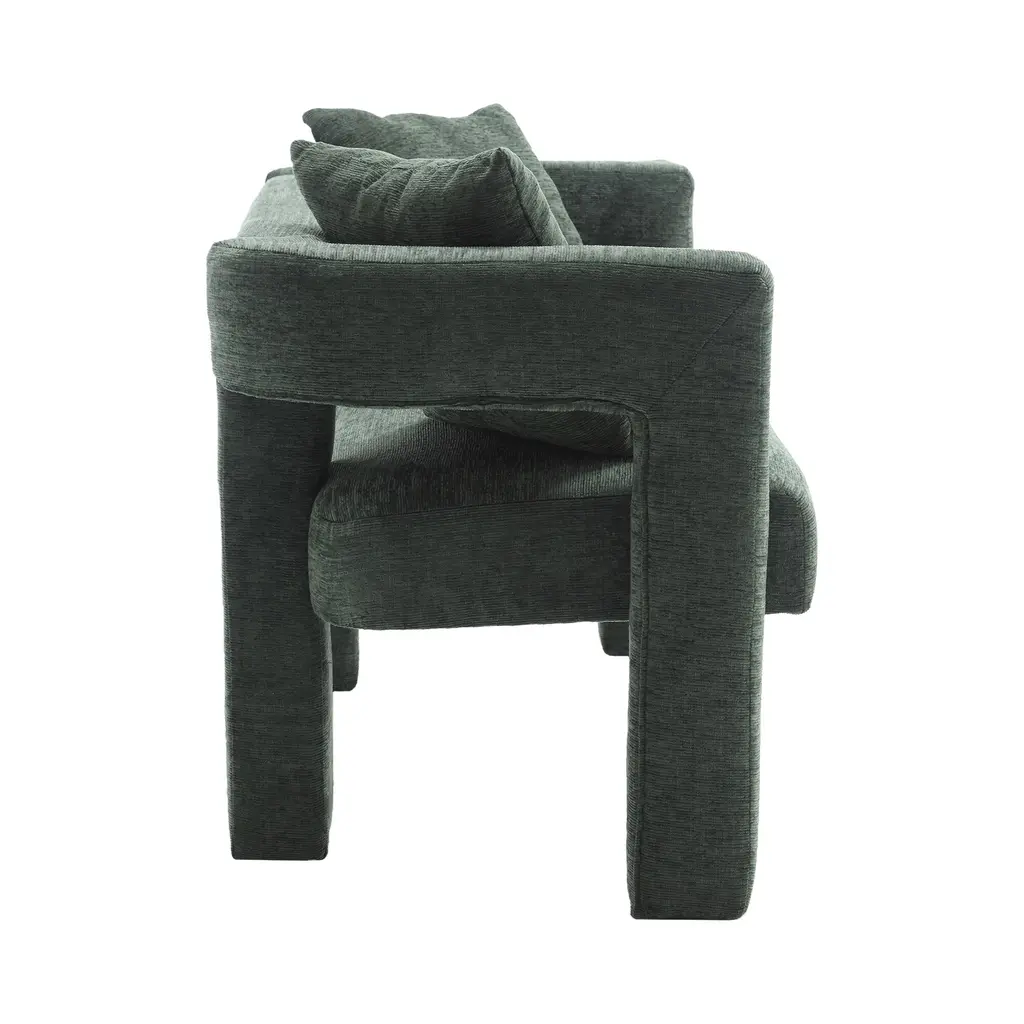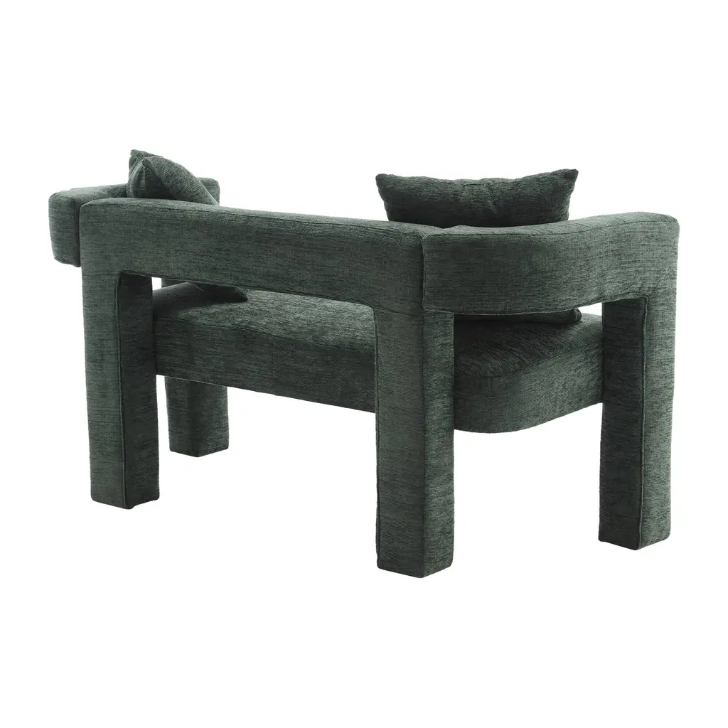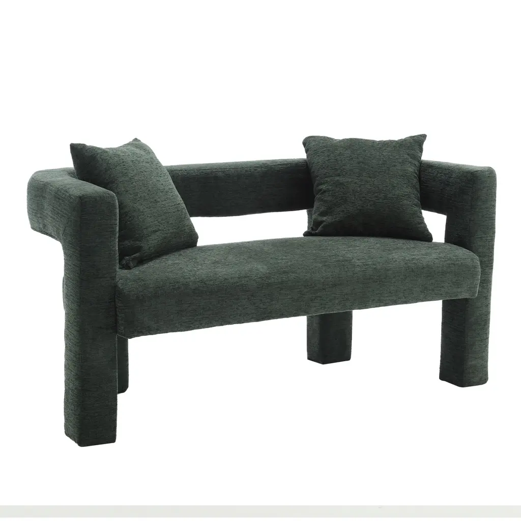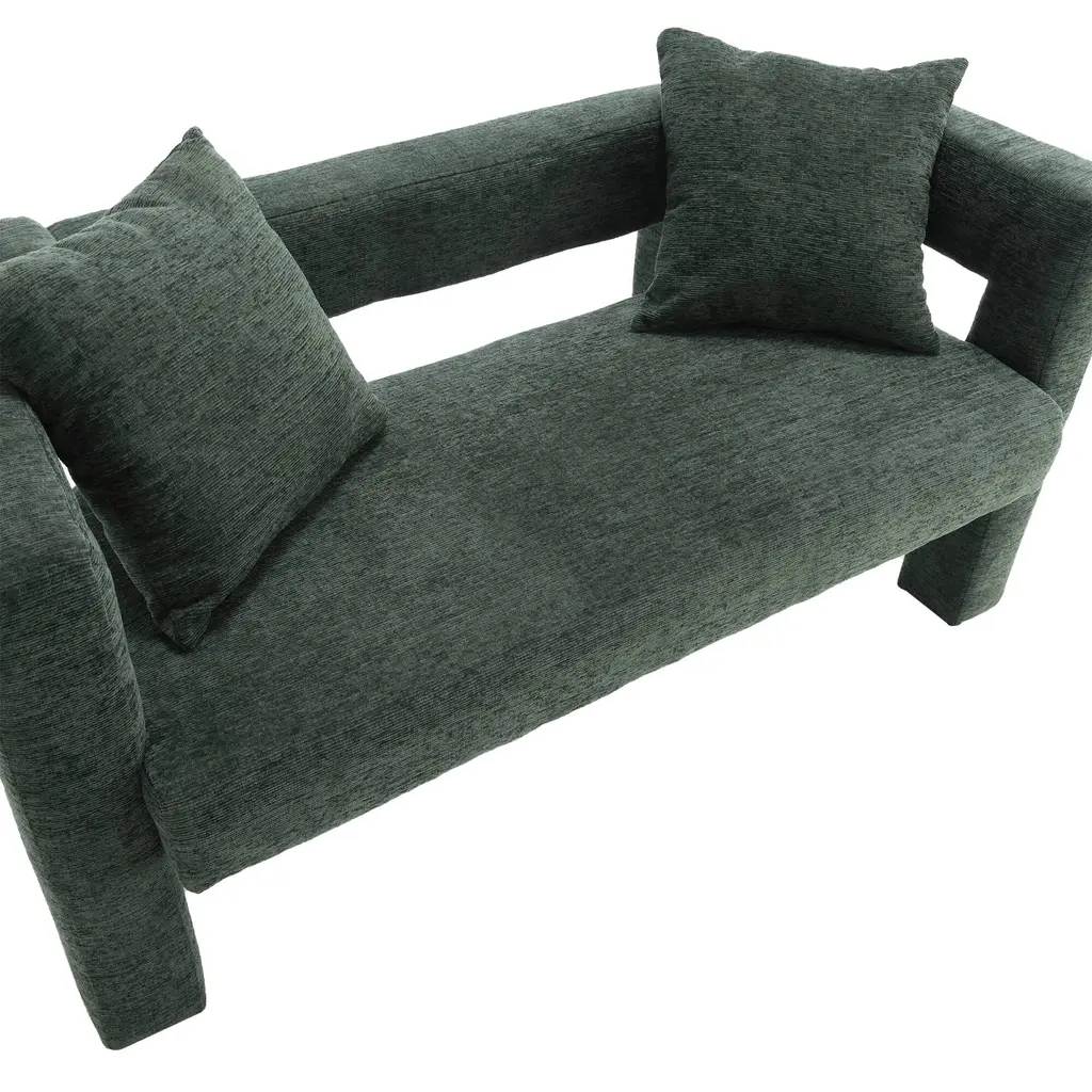 ▷2 Pillows This sofa is equipped with 2 small detachable pillows, allowing you to experience a visual feast of different designs. Excellent Structure Curved edges, padded with thick foam and upholstered with high-quality fabric, you can seat yourself in it comfortably for relaxation.The soft chenille fabric provides a comfortable sitting sensation, and the back backrest provides good support for your back to sit comfortably. Multifunctional Use This living room accent sofa, in fashionable and classic style, is suitable for various scenarios like dining room, living room, bedroom, dressing room, vanity room, etc. This is the best choice for your decorating a room or gifting to families and friends. Weights & Dimensions Upholstery Material Chenille Fabric Seat Fill Material Foam Weight Capacity 400 lb Frame Material PlyWood frame Arms Included Yes Removable Cushion Location Seat Country of Origin China Product size 51.18'' H*23.62'' W*25.59'' Back Height - Seat to Top of Back 9.06'' Leg Height 10.06'' Arm Height 9.06'' Seat Depth 19.29'' Seat Width 43.31'' Seat Height 9.06'' Feet material Plywood Net ▷Gross weight 46.20 ▷52.90LBS ▷Eco-friendly Solid Wood Frame: This double sofa is made of high-quality solid wood frame, which is sturdy, durable and environmentally friendly, providing you with long-lasting stability and safety. ▷Soft Chenille Fabric: The surface is covered with high-grade chenille fabric, which is soft, comfortable and delicate to the touch, adding warmth and luxury to your home space. ▷Arc Backrest Design: unique arc backrest design, elegant and comfortable, perfectly fit the human body curve, provide the ultimate backrest support. ▷Hollow Design: the hollow design between the backrest and cushion enhances the transparency and modernity of the sofa, adding a touch of fashion to your space. ▷Full Soft Package Foot Design: four sofa feet are fully soft package design, not only to protect your floor from scratches, but also to enhance the overall beauty of the sofa. ▷High-density Sponge Cushion: Filled with high-density sponge, soft and strong support to ensure that the sofa remains comfortable for a long time without deformation. ▷Equipped with Original Pillows: comes with 2 original pillows, perfect match with the sofa, adding a sense of comfort while also enhancing the visual effect of the sofa. ▷Multiple Color Choices: 5 colors are available for you to choose from, suitable for different home styles and personal preferences, easy to match your interior decor. ▷Suitable for All Spaces: Whether it is living room, study room or bedroom, this double sofa can be perfectly integrated to create a cozy lounge corner for you. ▷Easy to Install: Conveniently designed and equipped with detailed installation instructions and tools, the installation process is quick and easy, making it easy for you to own this cozy double sofa.