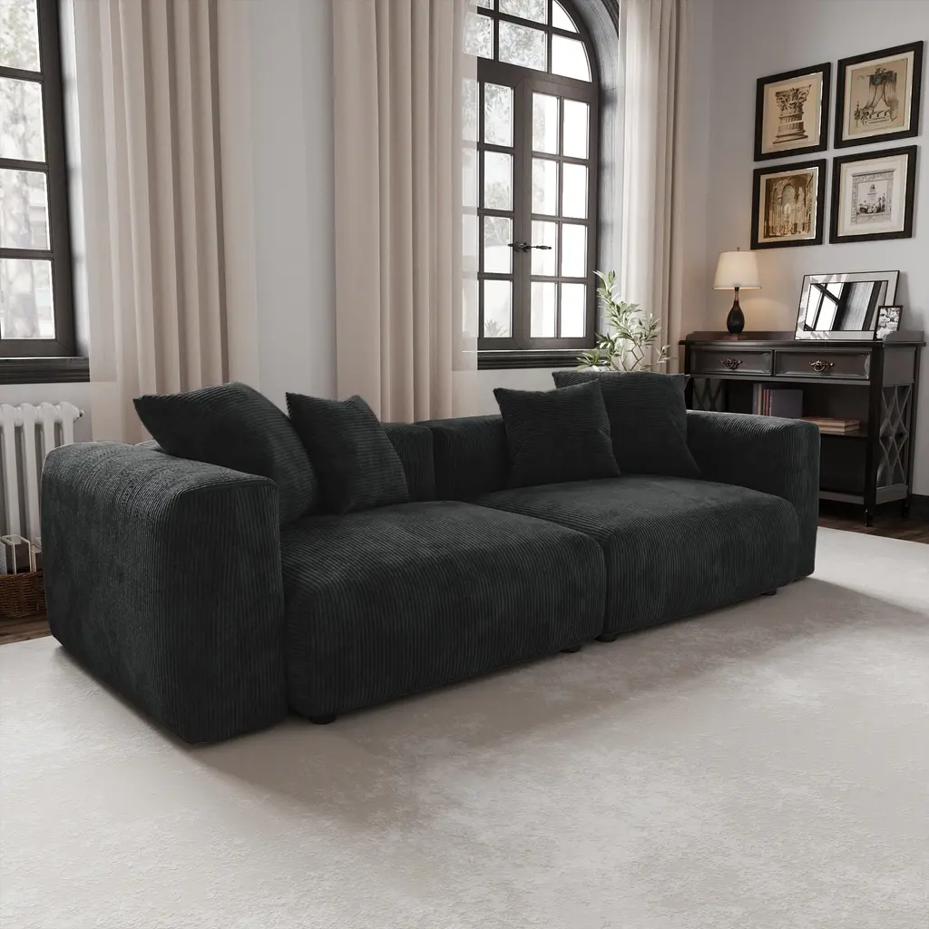 This Sectional Sofa is made of high-quality corduroy, which is soft, wear-resistant, wrinkle resistant, and does not deform,equipped with a built-in sponge spring pack, it is soft and comfortable to sit on. The seat cushions, pillows, backrests, and support frame of the modern sofa all conform to ergonomics,from the backrest to the seat cushion, a comfortable experience surrounds your back, waist, hips, and legs, allowing your body to rest and relax at the top.This modular couch is perfect for daily rest, relaxation, and family gatherings.Feature: