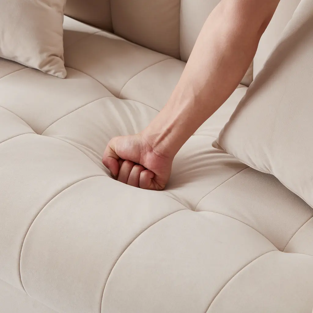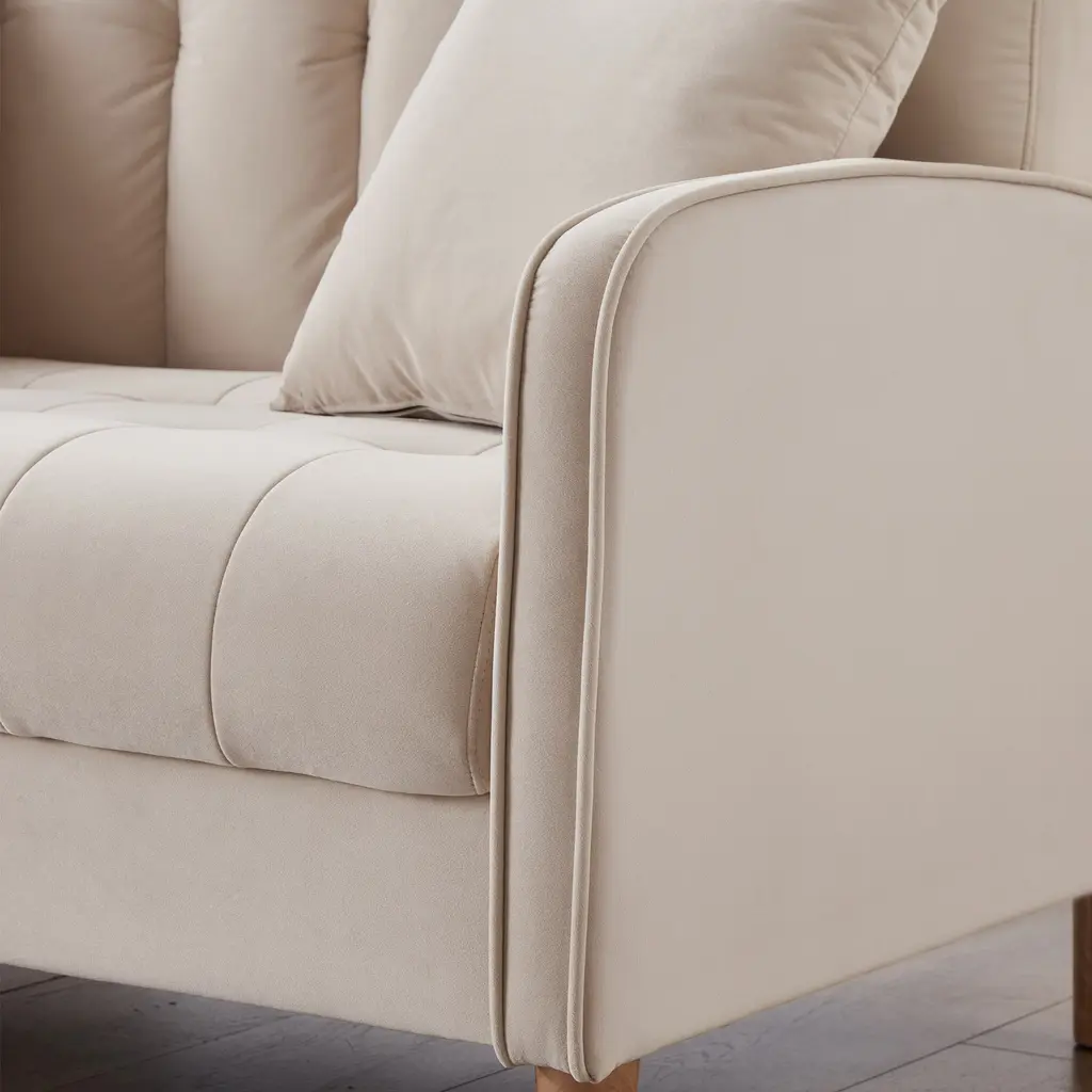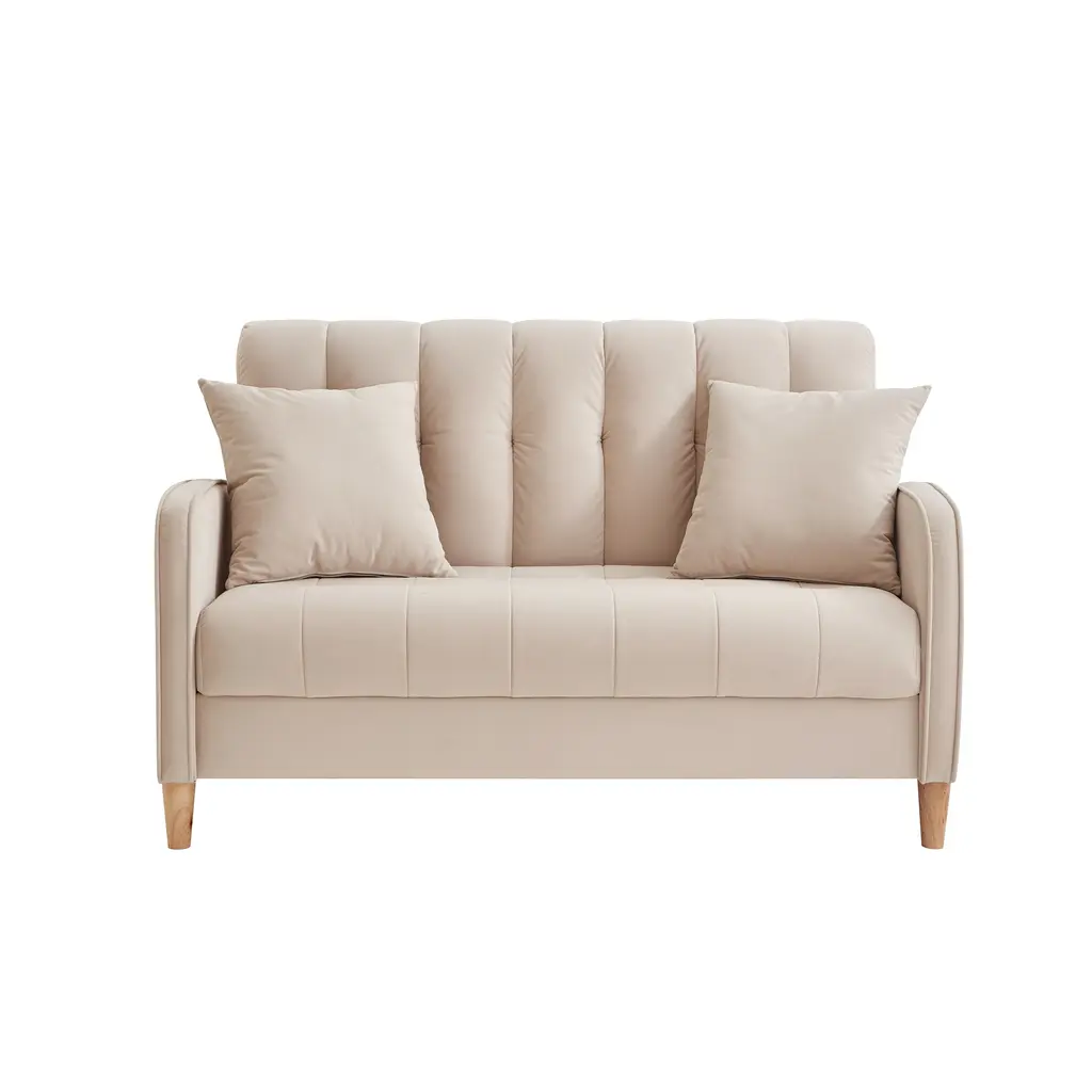 Modern Design Couch For Living Room Department Small Space Loveseat Smooth Velvet Upholstered Tufted Sofa Beige - Beige
