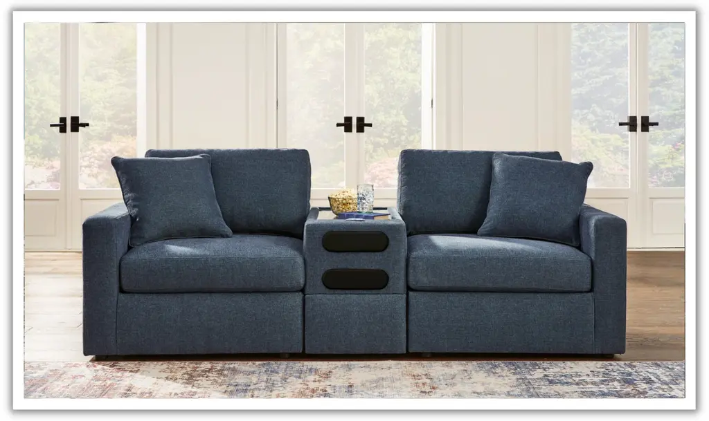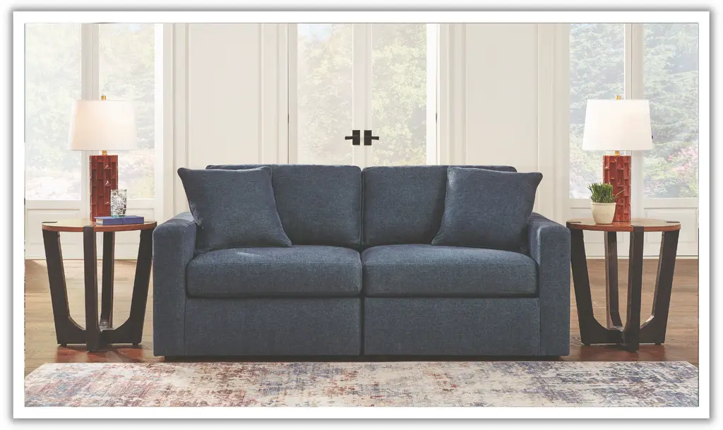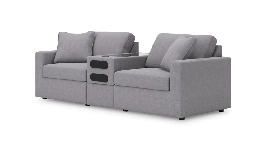Effortlessly cool, endlessly adaptable. The Modern Heritage Modmax Loveseat combines stylish minimalism with unmatched versatility and comfort—perfect for today’s relaxed, high-functioning living spaces. This 2-Seater was designed for those who love contemporary aesthetics but crave practical lounging, this modular sofa delivers comfort, convenience, and customization in one sleek package. Upholstered in advanced Next-Gen Nuvella™ performance fabric, this loveseat is made for real life—soft to the touch, easy to clean, and built to resist stains and wear. Whether it’s a cozy night in or you're entertaining guests, the Modmax adapts to your needs with its floating modular design. Each piece is finished on all sides and connects seamlessly, allowing you to rearrange the layout effortlessly. Regular Loveseat With Storage Console With Audio Console A second configuration variation includes a classic storage console in place of the audio unit—ideal for those who prioritize streamlined utility.