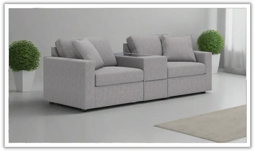 Effortlessly cool, endlessly adaptable. The Modern Heritage Modmax Loveseat combines stylish minimalism with unmatched versatility and comfort—perfect for today’s relaxed, high-functioning living spaces. This 2-Seater was designed for those who love contemporary aesthetics but crave practical lounging, this modular sofa delivers comfort, convenience, and customization in one sleek package. Upholstered in advanced Next-Gen Nuvella™ performance fabric, this loveseat is made for real life—soft to the touch, easy to clean, and built to resist stains and wear. Whether it’s a cozy night in or you're entertaining guests, the Modmax adapts to your needs with its floating modular design. Each piece is finished on all sides and connects seamlessly, allowing you to rearrange the layout effortlessly. Regular Loveseat With Storage Console With Audio Console A second configuration variation includes a classic storage console in place of the audio unit—ideal for those who prioritize streamlined utility.