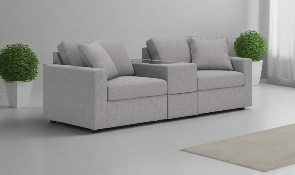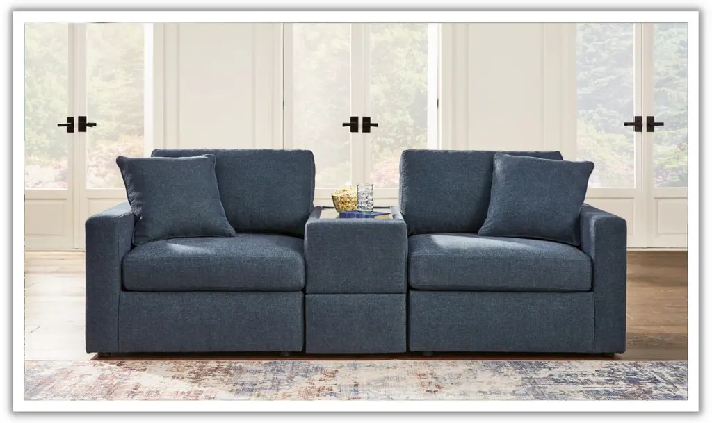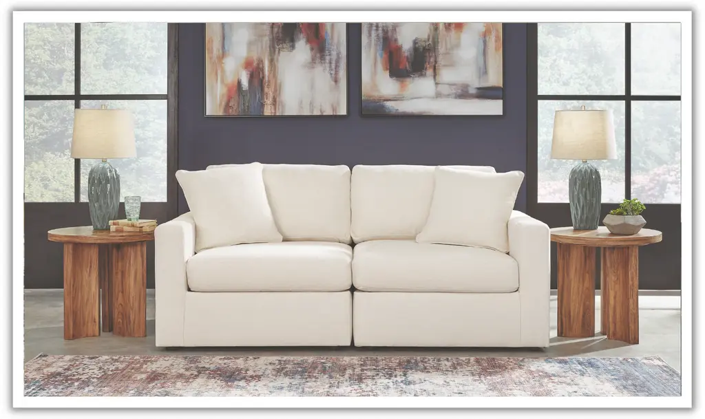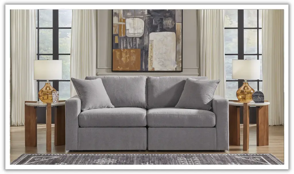 Effortlessly cool, endlessly adaptable. The Modern Heritage Modmax Loveseat combines stylish minimalism with unmatched versatility and comfort—perfect for today’s relaxed, high-functioning living spaces. This 2-Seater was designed for those who love contemporary aesthetics but crave practical lounging, this modular sofa delivers comfort, convenience, and customization in one sleek package. Upholstered in advanced Next-Gen Nuvella™ performance fabric, this loveseat is made for real life—soft to the touch, easy to clean, and built to resist stains and wear. Whether it’s a cozy night in or you're entertaining guests, the Modmax adapts to your needs with its floating modular design. Each piece is finished on all sides and connects seamlessly, allowing you to rearrange the layout effortlessly. Regular Loveseat With Storage Console With Audio Console A second configuration variation includes a classic storage console in place of the audio unit—ideal for those who prioritize streamlined utility.