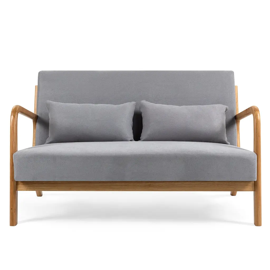 Modern Solid Wood Loveseat Sofa ,Upholstered Small Couch For Small Space,2 Seat - Light Gray