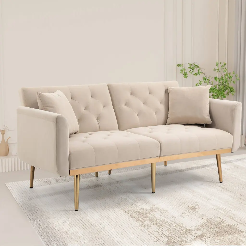 Modern Upholstered 2 Seaters Sofa Soft Love, Accent Deep Seat Loveseat Double Sofa & Couch - Olive - Beige