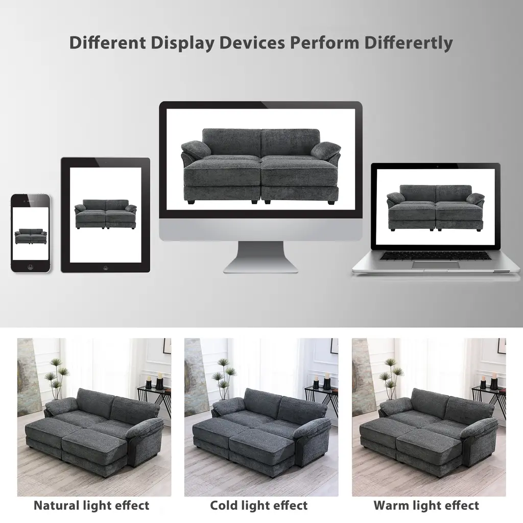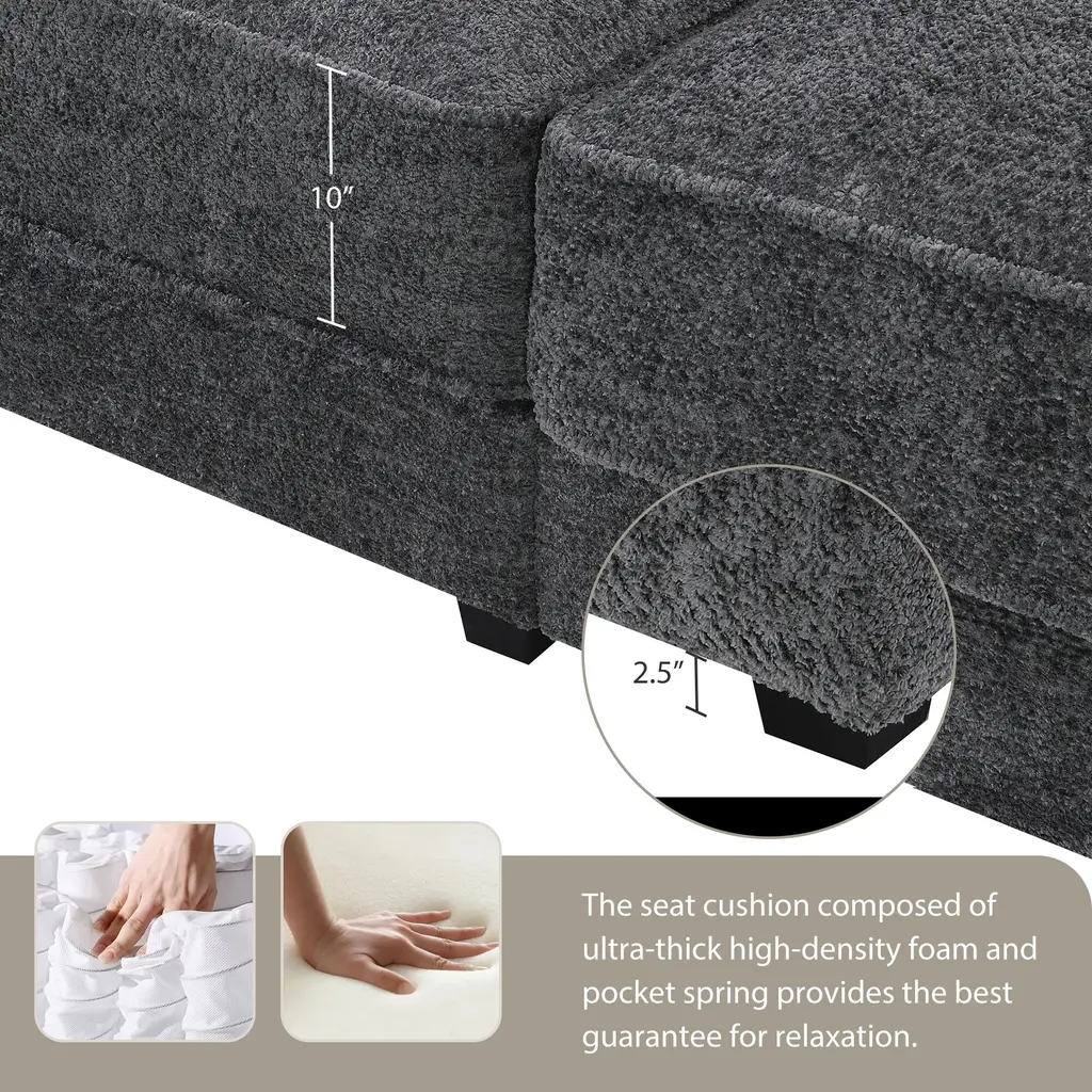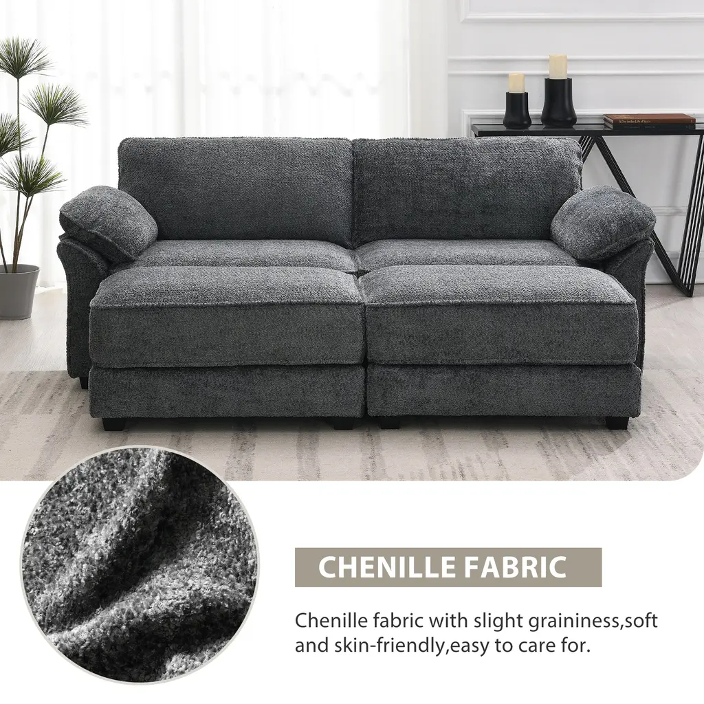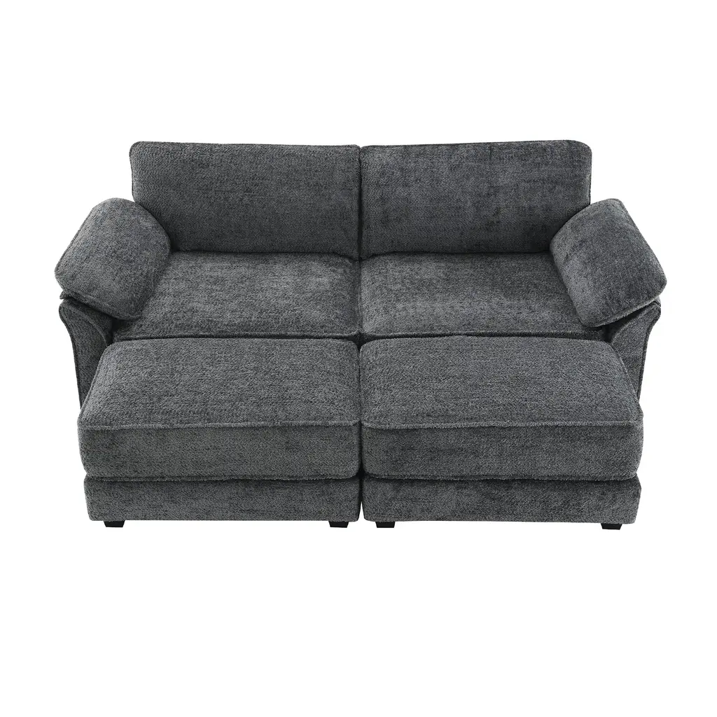 Modular Loveseat Sofa, Deep Seat Loveseat Sofa With Ottoman - Gray