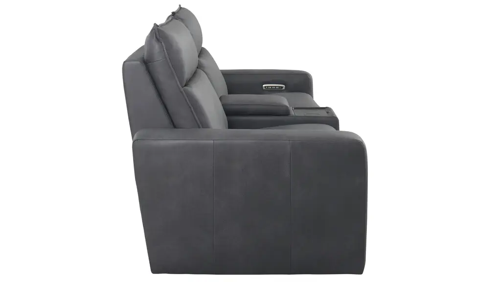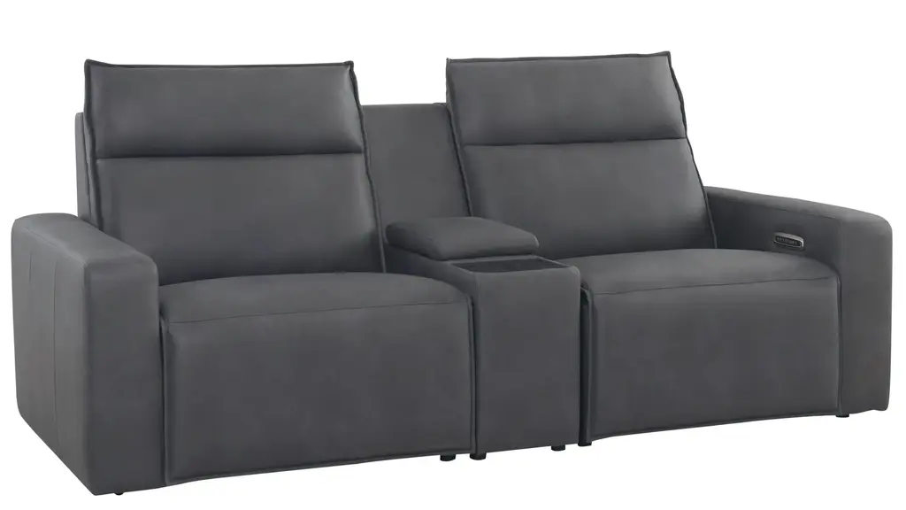 Ready to kick back, relax, and be fully immersed in comfort? The ModularTwo 3-pc. power Power Console Loveseat w/ Power Headrest is the seating solution you've been looking for. A celebration of contemporary style, the ModularTwo is upholstered in soft and stain-resistant microfiber faux leather. Track arms and a tailored pub back with flange-edged cushions bring a casual yet elevated aesthetic to your home. Designed with comfort and flexibility at the forefront, ModularTwo components are upholstered on all sides so you can rearrange and add to your personalized configuration as you please. You'll also love the tech features for your modern lifestyle: Power controls at your fingertips allow effortless reclining for the perfect position, and built-in Bluetooth speakers in the console let you stream music and broadcasts for a truly immersive experience. Choose a preconfigured design or combine individual components to create modular seating that's perfect for your space and style.