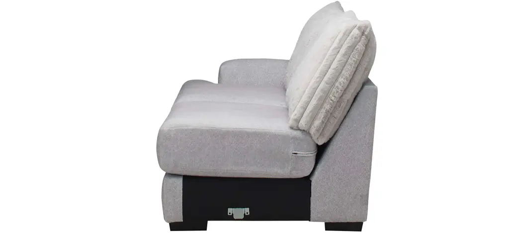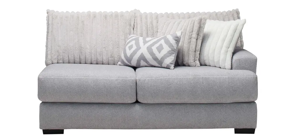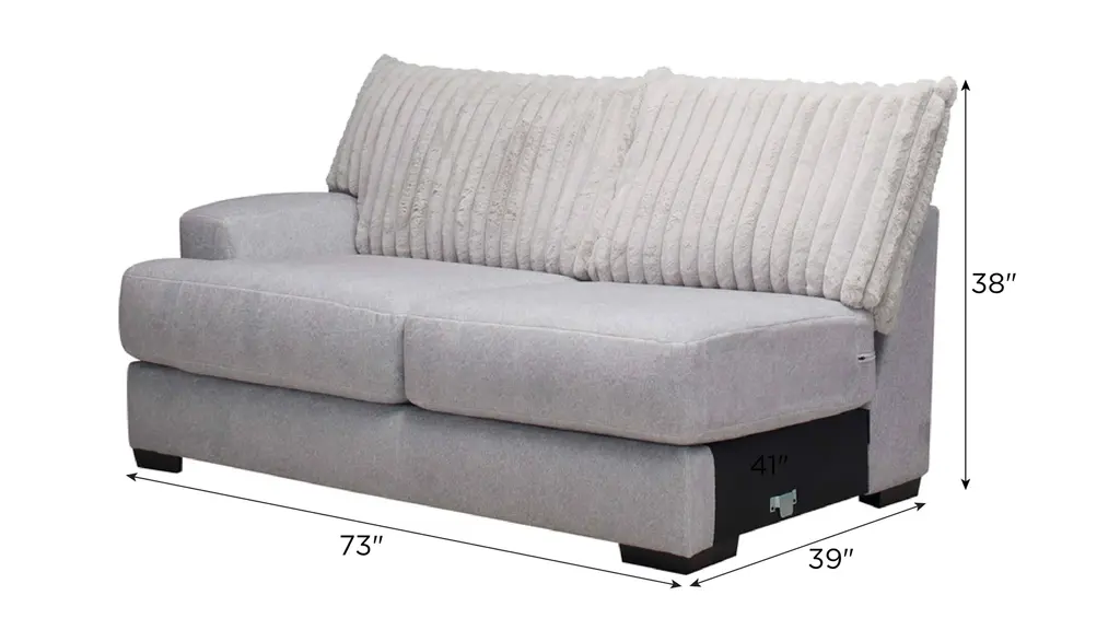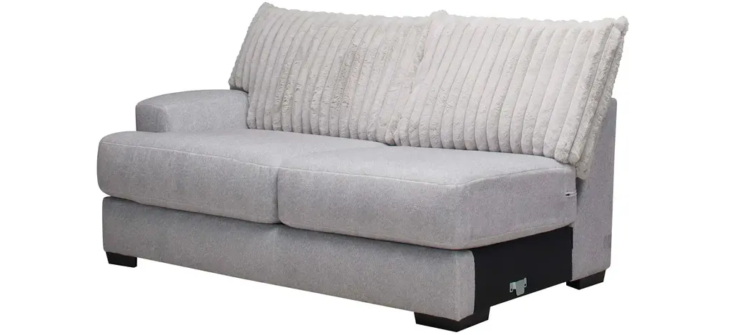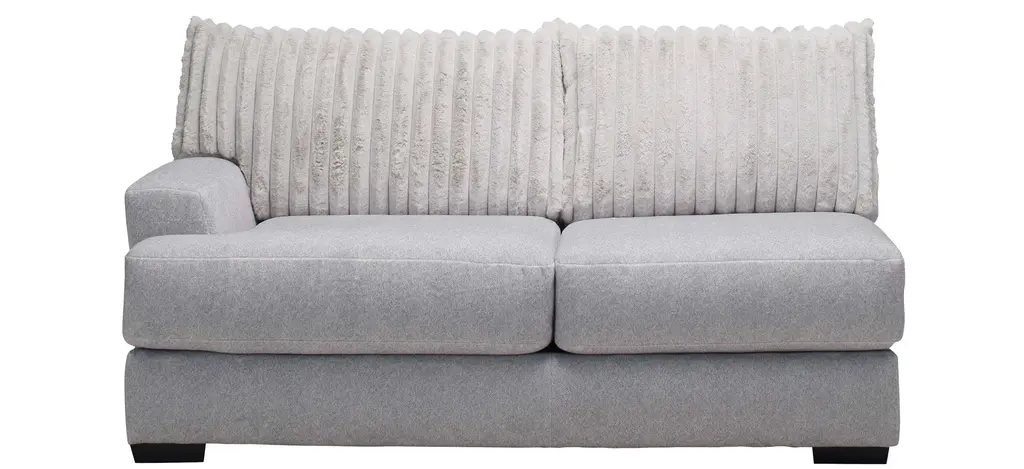 Lean into bold texture and blissful comfort with the faux fur chic of the Mondo left arm-facing loveseat. Designed for visual impact and enduring seating comfort, the silvery gray Mondo transforms your home into a haven of plushy elegance. Combine sectional pieces to create endless configurations to suit your home and lifestyle.