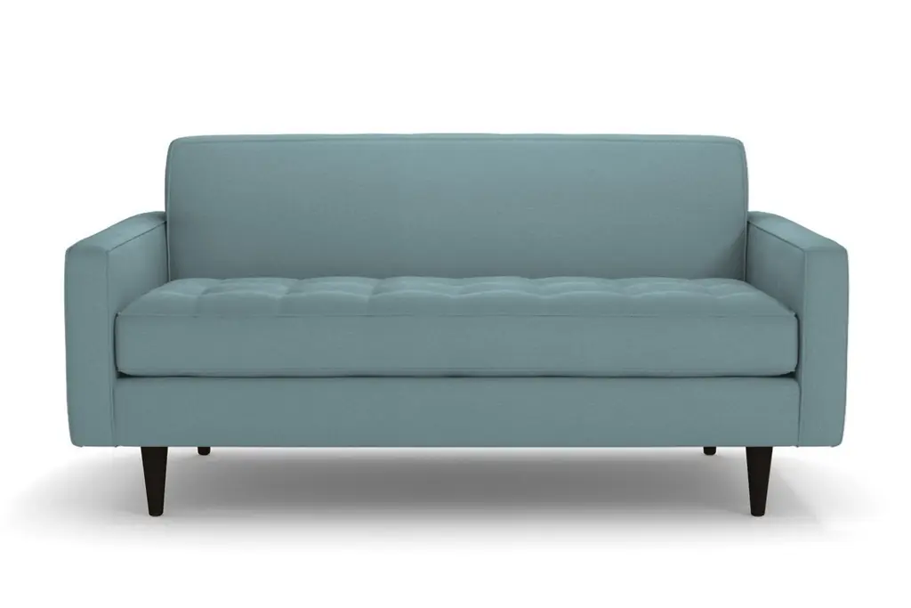 The Monroe Loveseat From Kyle Schuneman has a definite Mad Men-esque appeal to it, so much so that we can see it prominently taking center stage in Don Draper's office. It's the perfect silhouette for those who are drawn to the mid-century style and the perfect loveseat size - 56"w x 34"d x 31"h - for apartment living or homes with a smaller living room. It also comes in the larger 68"w x 34"d x 31"h apartment size. This stylish sofa not only comes in a range of colors, it comes in a range of awesome, unexpected colors. With hues such as pink lemonade, amethyst or green apple, we bring new meaning to the phrase, make a statement!