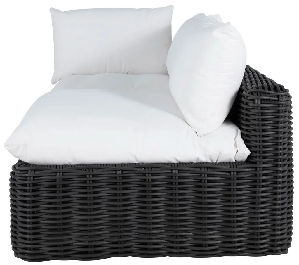 The Montecito Sectional Chaise collection features oversized proportions for the ultimate in luxurious seating. Inspired by the charm of handwoven basketry, the large wicker weave offers a relaxed look and feel to the low, linear profile of these outdoor chaises. Made for years of enjoyment and beauty with highly weather- and UV-resistant N-Dura™ resin wicker for a worry-free experience with the look of natural materials. Pair the right and left arm facing chaises to create an outdoor sectional sofa.