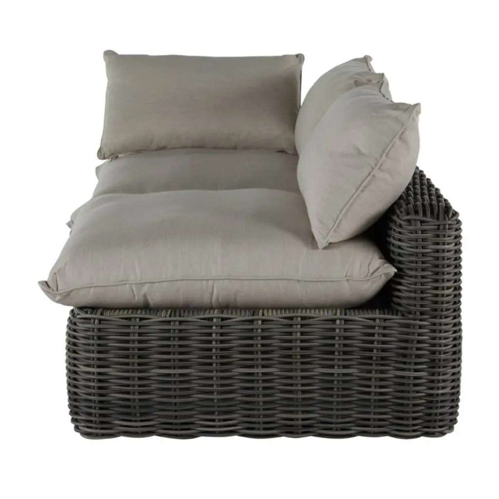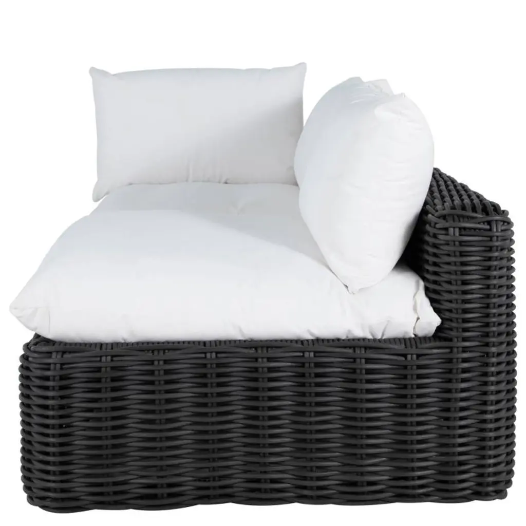 The Montecito Left Arm Facing Sectional Chaise features oversized proportions for the ultimate in luxurious seating. Inspired by the charm of handwoven basketry, the large wicker weave offers a relaxed look and feel to the low, linear profile of this outdoor chaise. Made for years of enjoyment and beauty with highly weather- and UV-resistant N-Dura™ resin wicker for a worry-free experience with the look of natural materials. Pair with the Montecito Right Arm Facing Chaise to create an outdoor sectional sofa.
