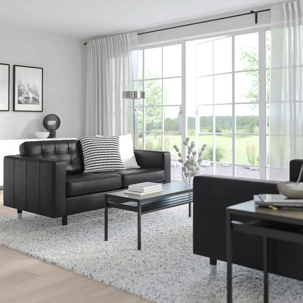 MORABO Loveseat - Grann/Bomstad black/metal. Seat cushions filled with high-resilience foam and polyester fiber wadding provide great seating comfort. Removable armrests make it easy to add on a chaise lounge. 10-year limited warranty. Read about the terms in the limited warranty brochure.