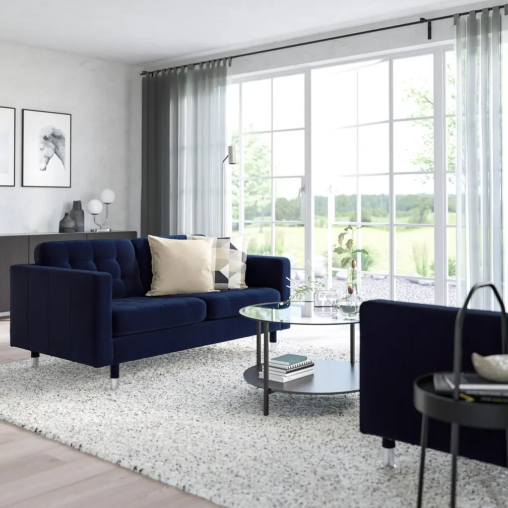 MORABO Loveseat - Djuparp dark blue/metal. Seat cushions filled with high-resilience foam and polyester fiber wadding provide great seating comfort. Removable armrests make it easy to add on a chaise lounge. 10-year limited warranty. Read about the terms in the limited warranty brochure.
