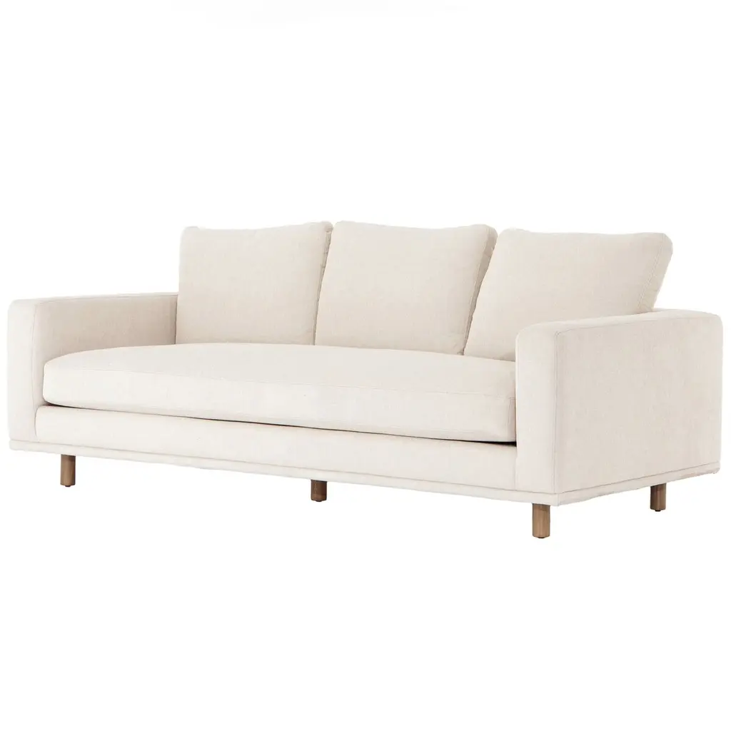 MORABO Sofa - Gunnared light green/wood. Seat cushions filled with high-resilience foam and polyester fiber wadding provide great seating comfort. Removable armrests make it easy to add on a chaise lounge. 10-year limited warranty. Read about the terms in the limited warranty brochure.