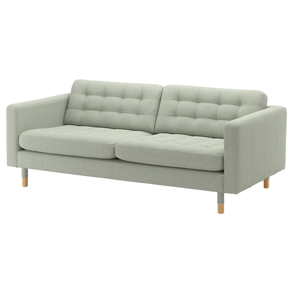 MORABO Sofa - Gunnared light green/wood. Seat cushions filled with high-resilience foam and polyester fiber wadding provide great seating comfort. Removable armrests make it easy to add on a chaise lounge. 10-year limited warranty. Read about the terms in the limited warranty brochure.