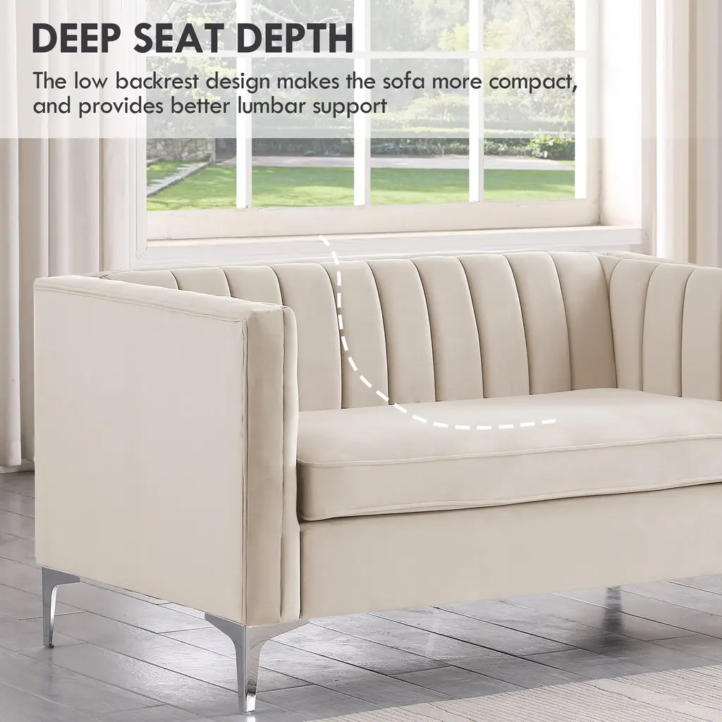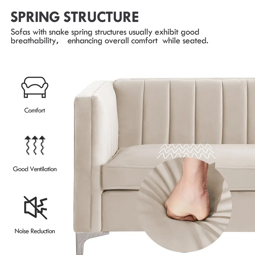 Introducing the Morden Fort Upholstered Accent Living Room Loveseat, a perfect combination of fashion and elegance. This loveseat features a high-density sponge that provides better resilience and ensures it won't easily deform. With its space-saving design, this loveseat makes the best use of small spaces while providing a comfortable seating experience. Features: Specifications: