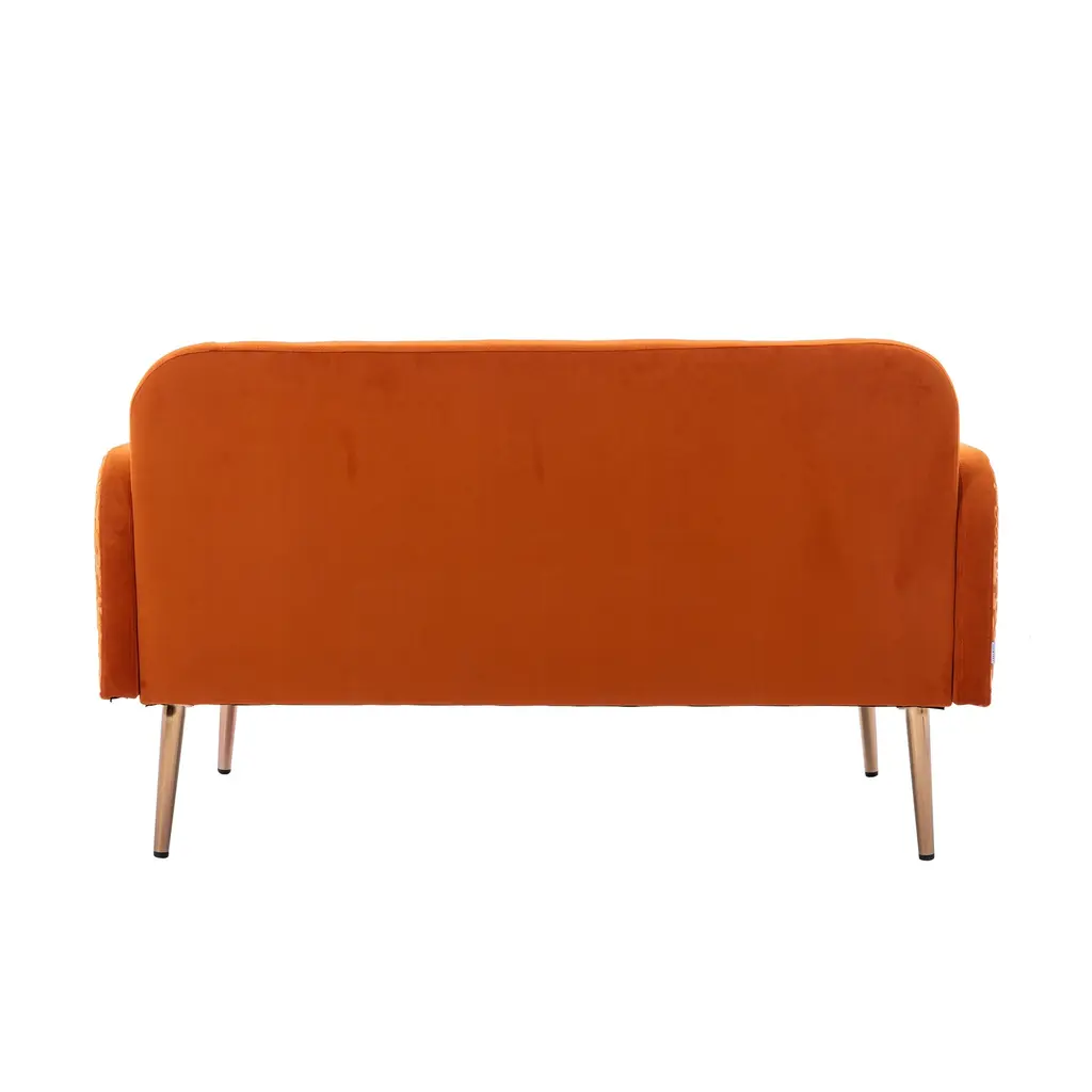 Mordern Velvet Sofa,loveseat Sofa With Metal Feet 4 Color - Orange