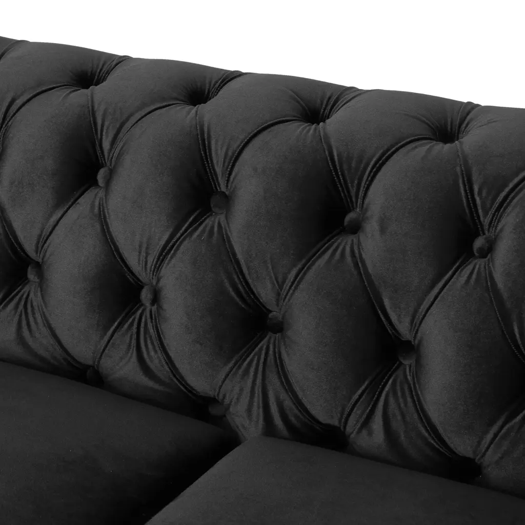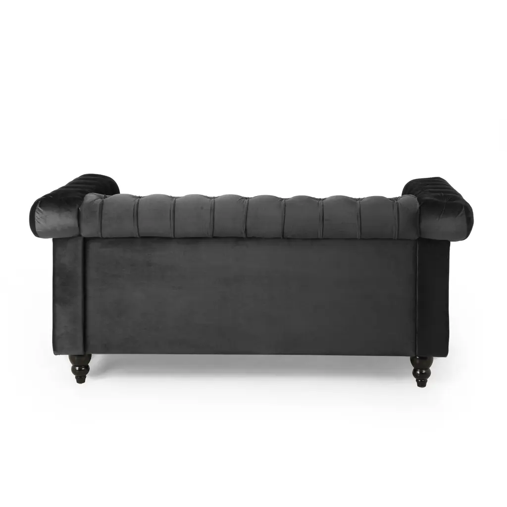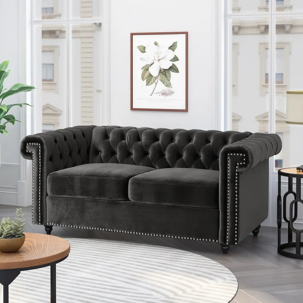 Nailhead Trim Vintage Loveseat, Tufted Button Back Sofa Chair - Black