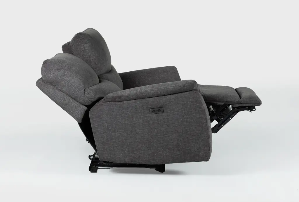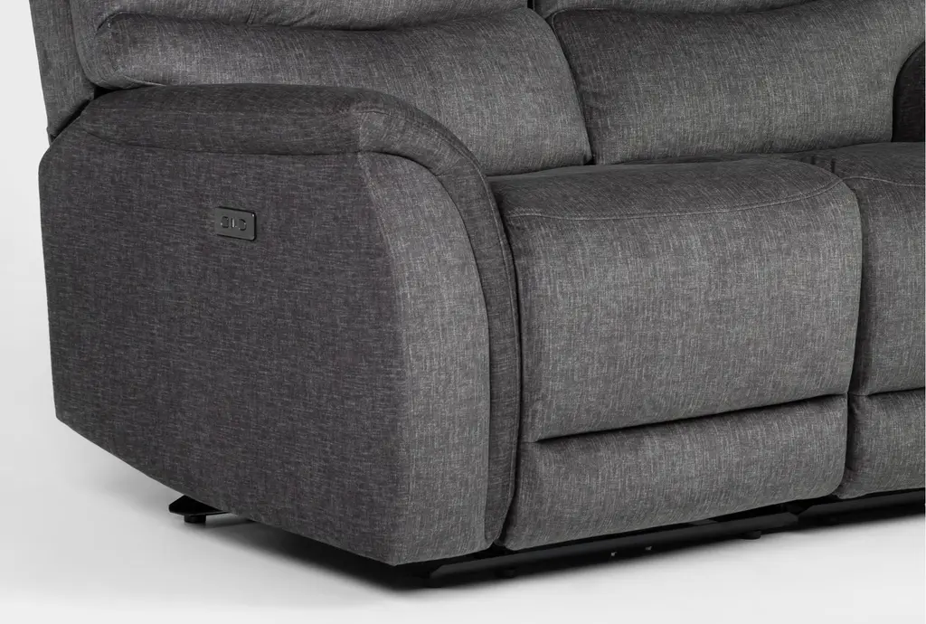 Experience the ultimate comfort with the Nash 2 Piece 64" Power Reclining Modular Loveseat. Perfect for any living room, this casual style loveseat comes in a striking gunmetal color that complements any interior decor. The reclining design offers relaxation at the touch of a button, making it a great addition to your home.