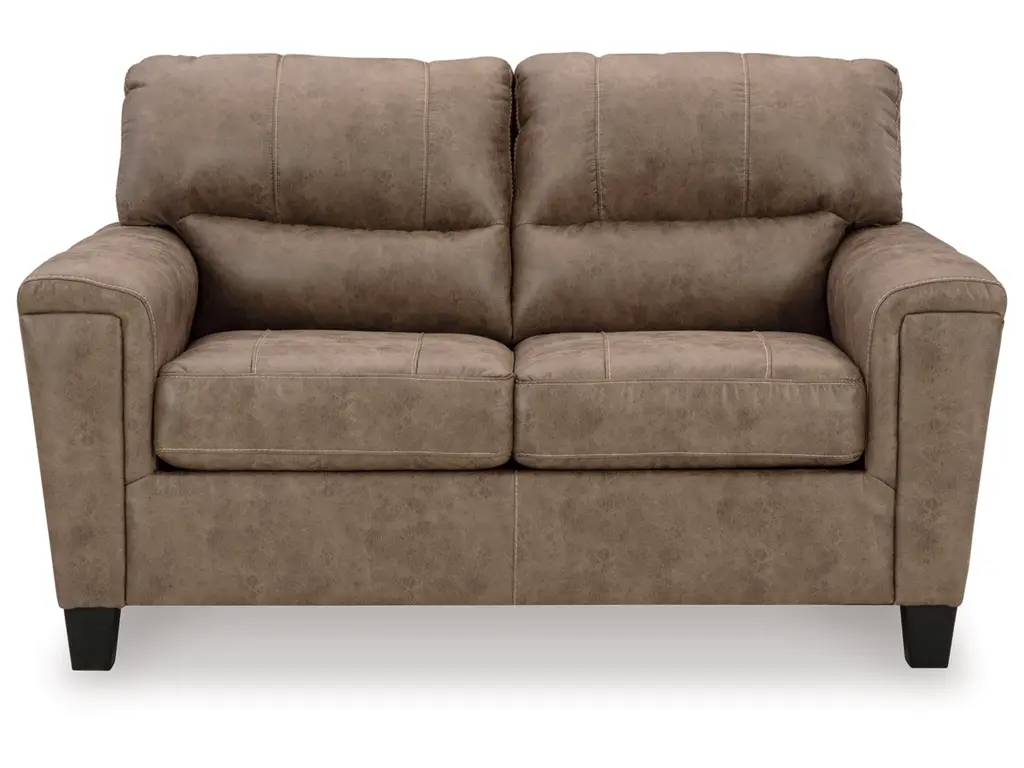 The decidedly modern Navi loveseat proves less is more, bringing simply inviting style to your living room. Take the guesswork out of decorating—its warm faux leather has a universal appeal, pairing with casual and contemporary aesthetics alike. All you need to do is sit back, relax and enjoy the comforts of home.