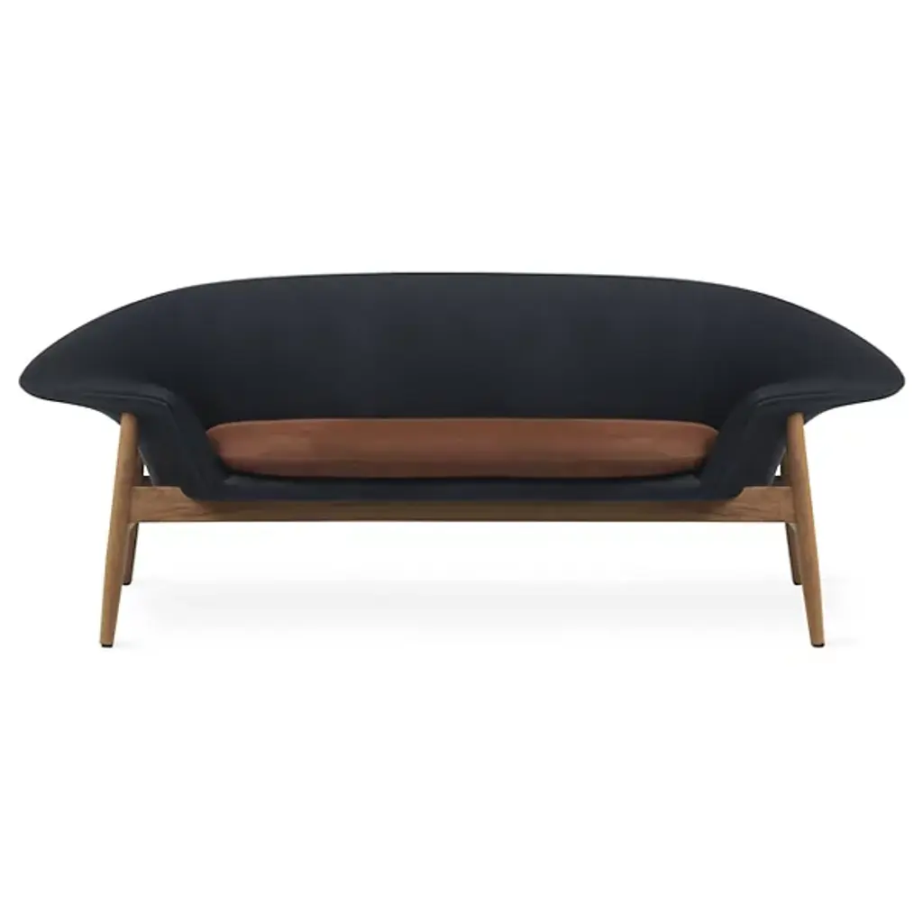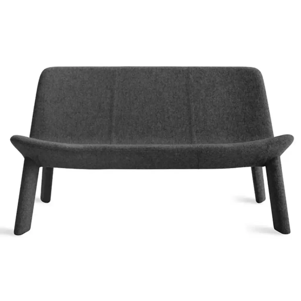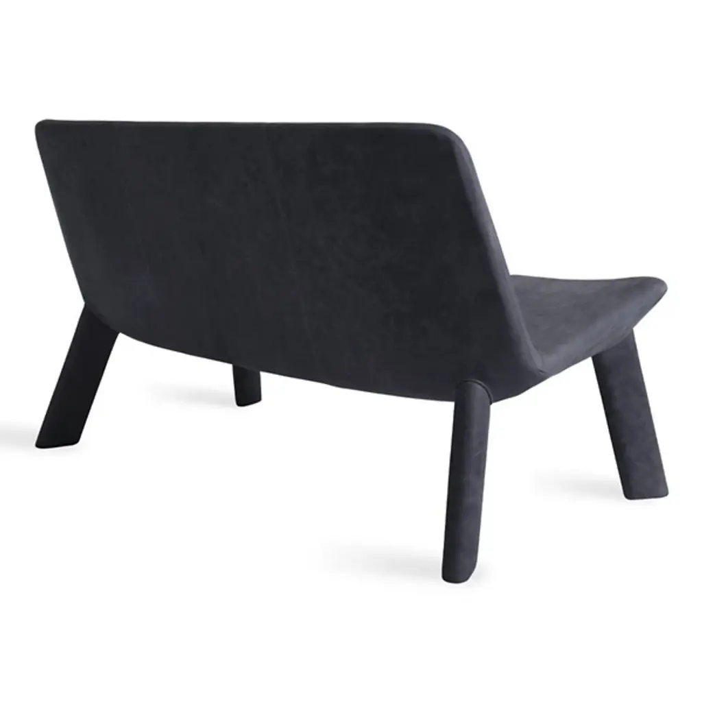 The Neat Settee from Blu Dot is crafted with attention to detail. Neat features a lightly padded and fully upholstered frame, offering style and comfort. Its gently contoured back and seat provide support, creating a cozy and relaxing seating experience. This settee has plastic glides on its feet to protect surfaces from scratches and scuffs. The upholstery features Vesper felts, luxurious blends of 80% wool and 20% nylon, offering durability and sophistication with 30,000 double rubs. The leather options are aniline.