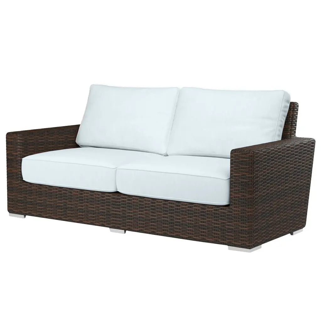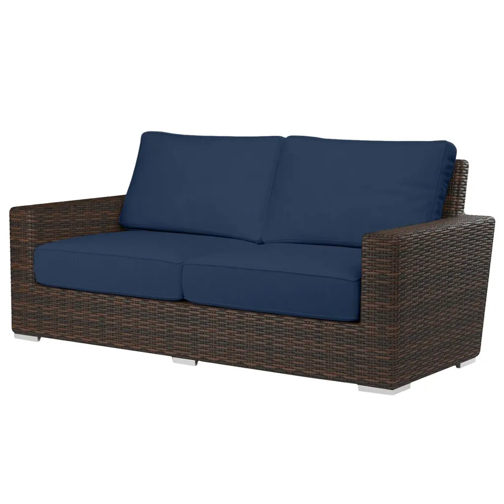 The Neptune Loveseat embodies casual sophistication, with transitional lines wrapped in a beautiful resin wicker finish. Outstanding comfort is provided with plush, fast drying cushions and generous seating proportions. Fully welded powder coated aluminum frame with Virgin PE Resin Wicker finish. Other features include Premium Sunbrella Fabric, weather resistant, high-resiliency density cushions, progressive springing system technology, and commercial quality construction.