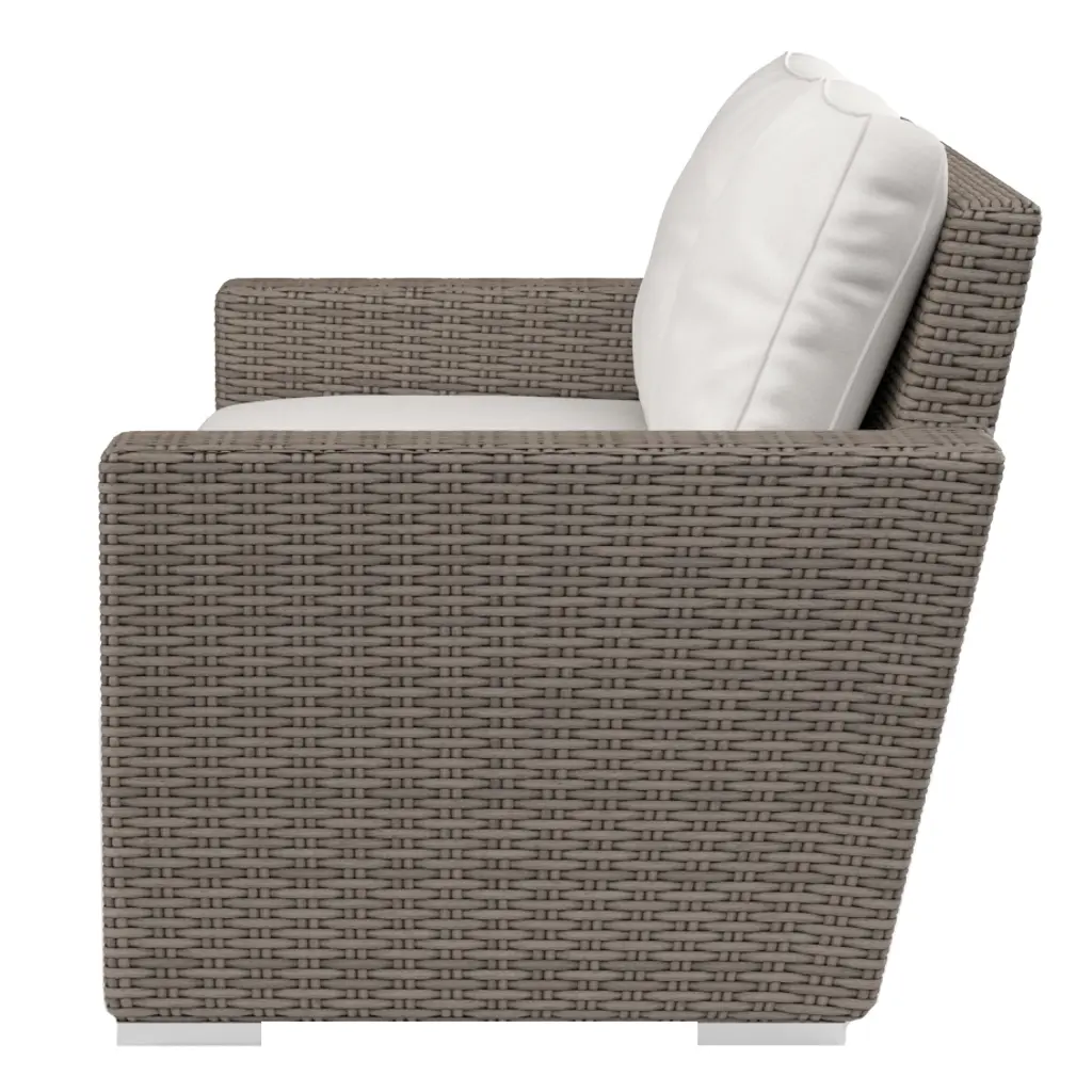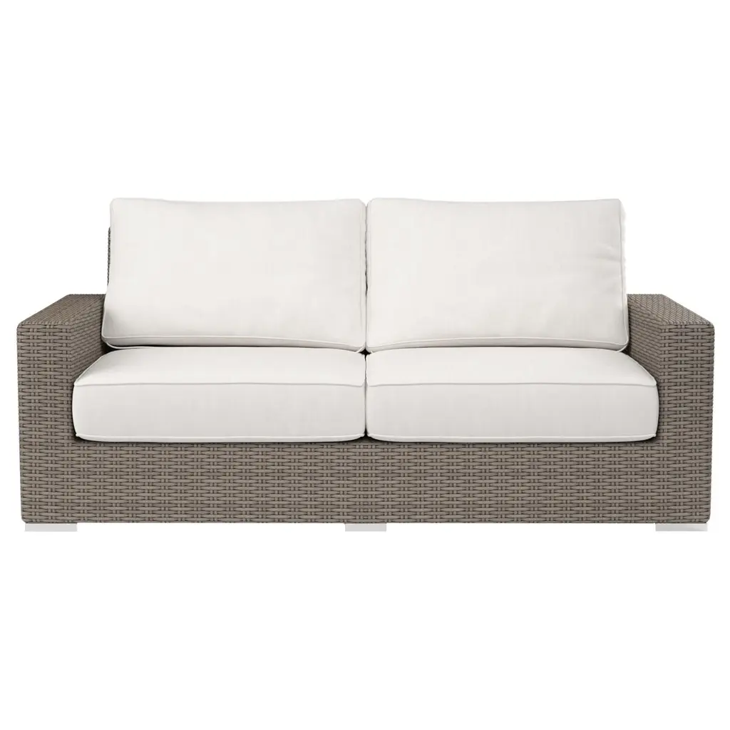 The Neptune Loveseat embodies casual sophistication, with transitional lines wrapped in a beautiful resin wicker finish. Outstanding comfort is provided with plush, fast drying cushions and generous seating proportions. Fully welded powder coated aluminum frame with Virgin PE Resin Wicker finish. Other features include Premium Sunbrella Fabric, weather resistant, high-resiliency density cushions, progressive springing system technology, and commercial quality construction.