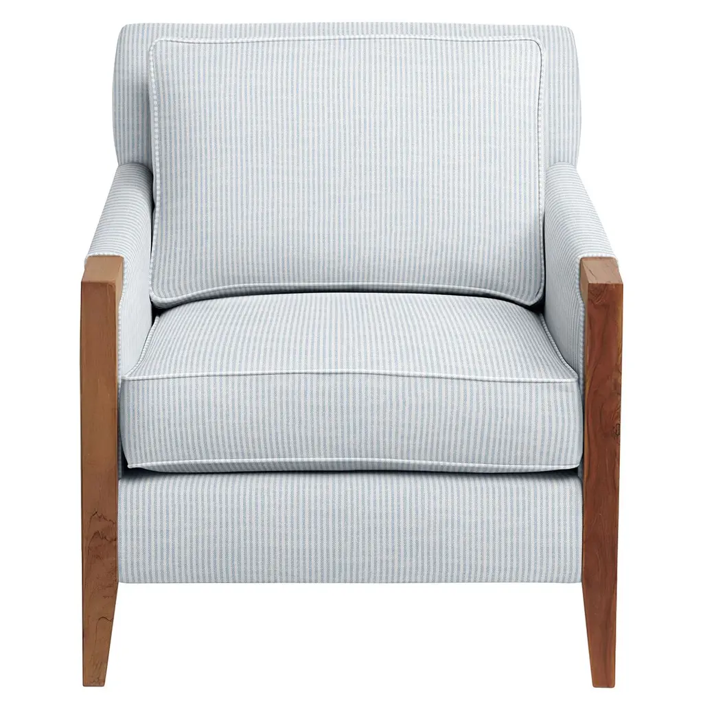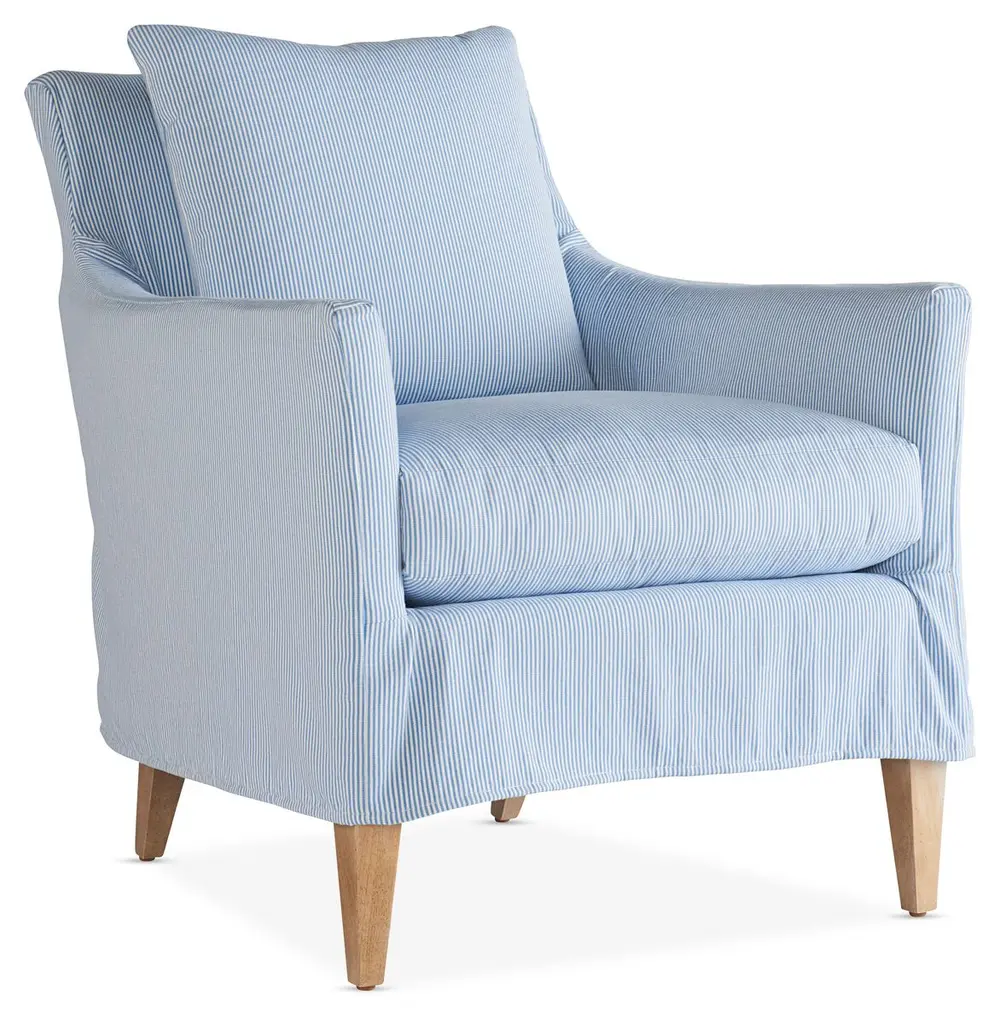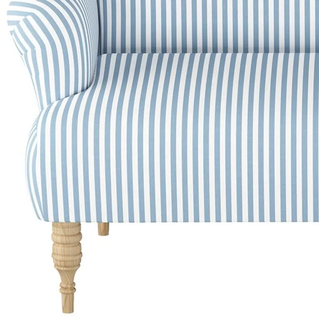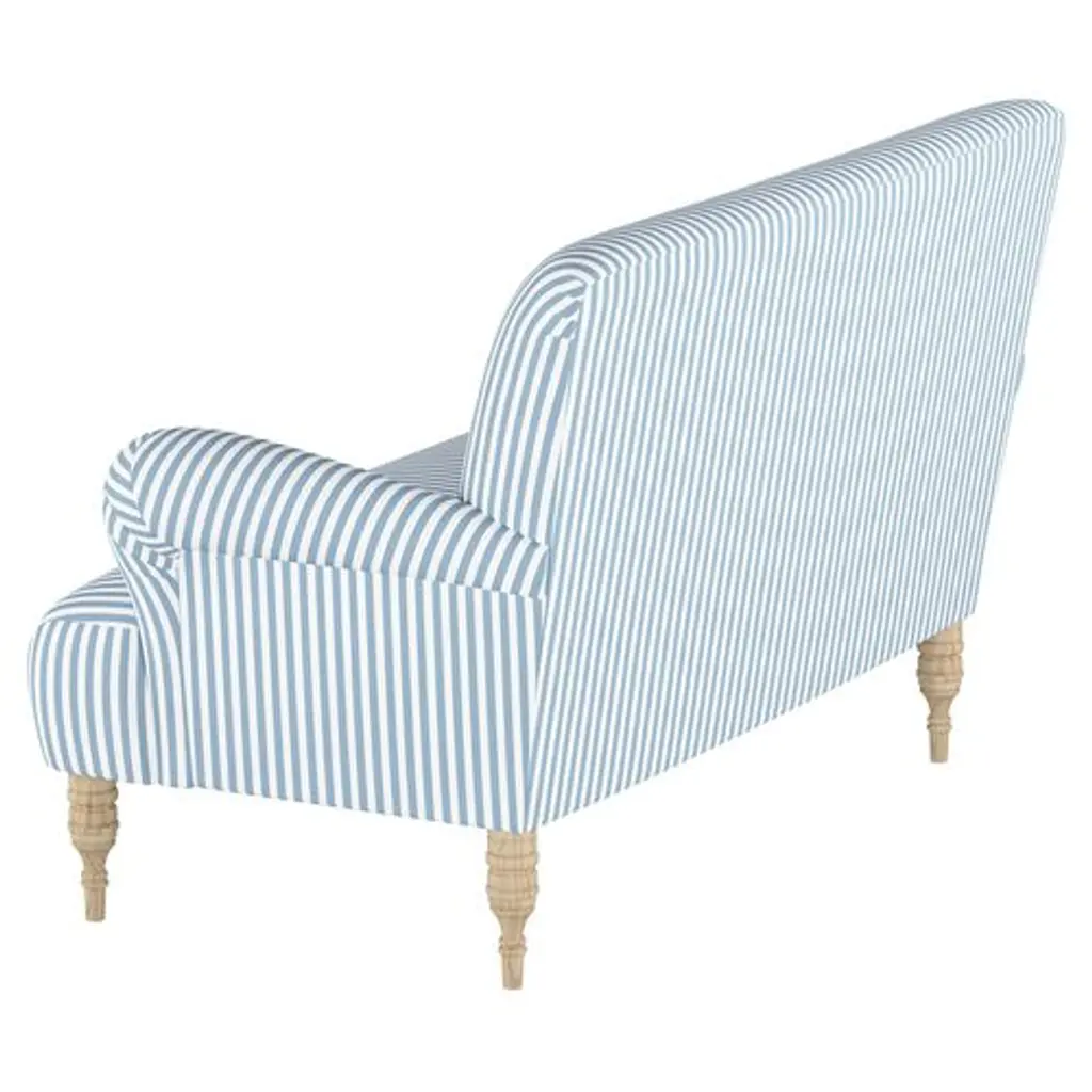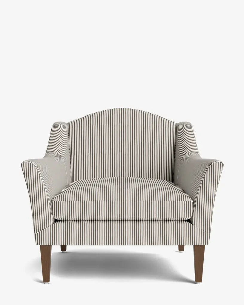 Resting on turned pine legs, this settee boasts versatile proportions, English arms, and neatly tailored upholstery. A generous foam-and-fiber fill ensures long-lasting comfort and support. Handcrafted in the USA.