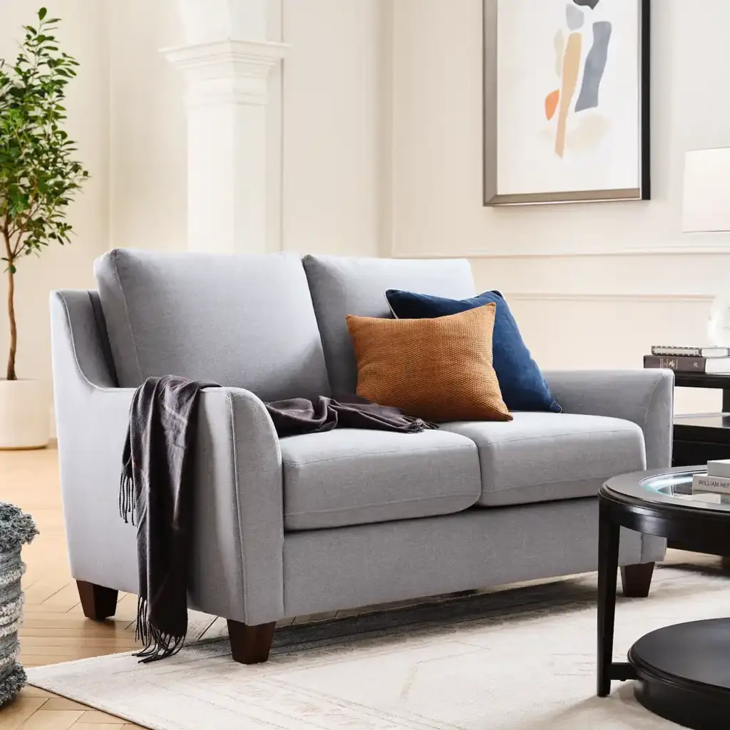 The Noah Loveseat has a chic classic design with a casual modern spark. Wings curve into elegant welt-trimmed flared arms. Box-border back and seat cushions blend the tailored look with loose, laid-back comfort versatile enough to dress up or down .