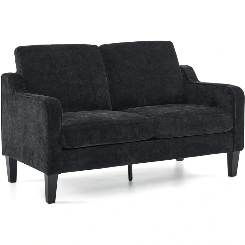 Indulge in effortless style and comfort with this chic transitional loveseat. Soft charcoal upholstery gracefully harmonizes with any décor, while plush pocket coil seat cushions and modern track arms provide inviting support for your downtime. Designed with attached cushions for a neat appearance and innovative metal legs that allow for easy assembly, this collection elevates the overall ambiance of your living space. Item Contents: Includes: One (1) loveseat Item Bullets: Chic transitional upholstered loveseat with effortless stylish comfort Soft charcoal upholstery that suits various interior styles Plush pocket coil seating for elevated comfort and support Modern track arms offering sleek, contemporary appeal Fully encased engineered wood frame with reliable sinuous springs Attached cushions and metal legs for quick, minimal hassle-free setup Materials: Materials: Plywood, Laminated Veneer Lumber (LVL), Fabric, Foam Features: Fabric Color: Charcoal Leg Color: Matte Black Upholstery: Fabric Fabric Content: Polyester 100% Clean Code: WS Overall Weight Limit: 600 Lbs Assembly Type: Partial Assembly Required Dimensions: Loveseat: 62.75 inches wide x 35.00 inches deep x 33.50 inches high Seat Dimensions: 45.00 inches wide x 21.50 inches deep x 19.25 inches high Accessories pictured are NOT included.