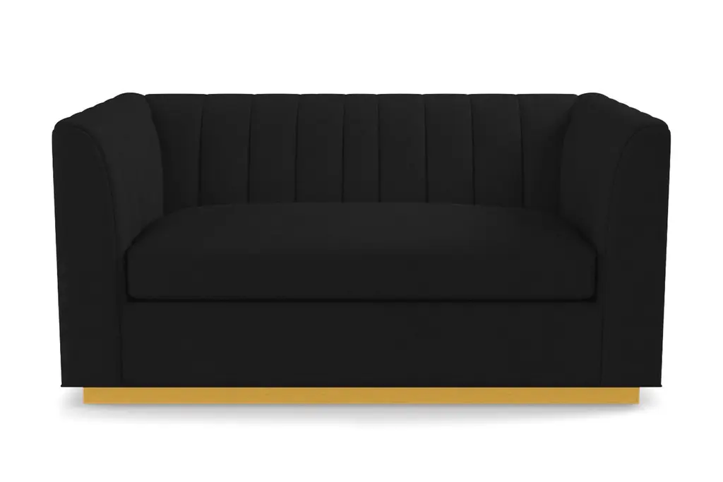This sleek apartment-size sofa has a tight channel-tufted back that has an art deco flair with a modern silhouette. With high arms and a high back this chair envelopes you like an old school restaurant booth but the deep seat has you staying for dessert.