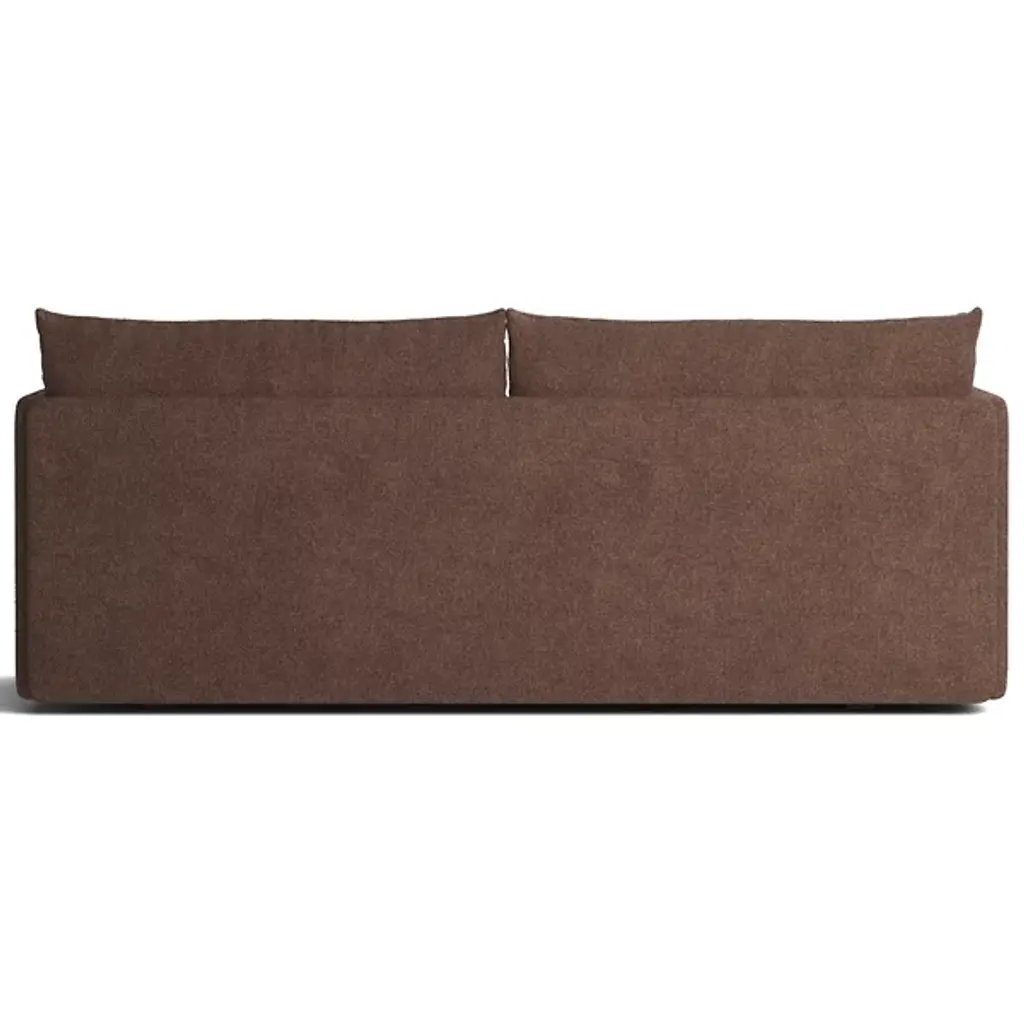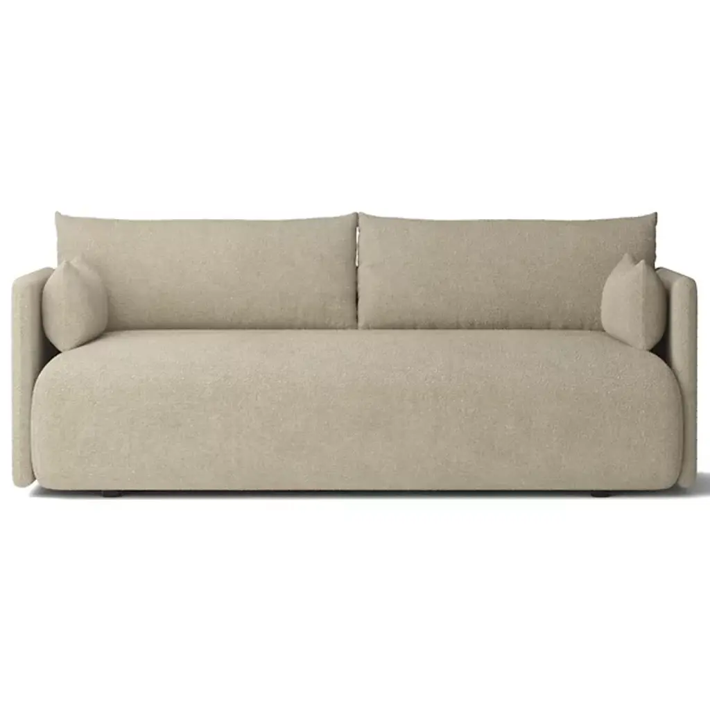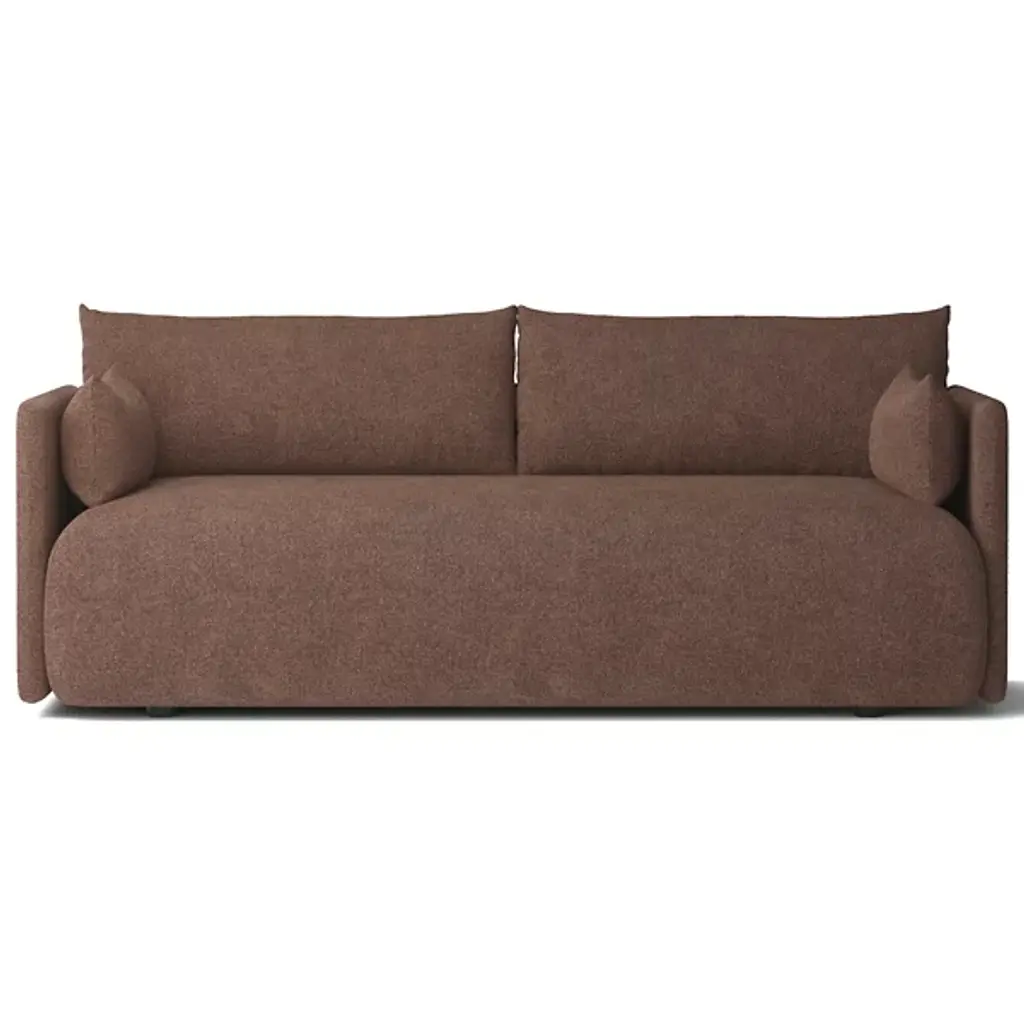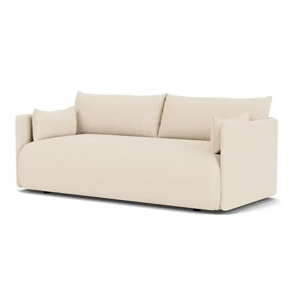 The Offset 2-seater Sofa from Audo Copenhagen, formerly Menu Studio, enriches its environment with a comfortable, casual presence. Part of Norm Architects’ study of balance, its structure plays with paradoxes, illustrated by the slim-sided yet soft-centered, “sharp yet cozy” approach. The Danish design studio brings a ‘soft minimalism’ approach that pairs rich, though sustainably harvested wood and luxurious materials with simple shapes that speak to all humans, using narrow armrests that offer support while making efficient use of floor space. A plush seat offers memorable comfort, while a pair of back cushions offer a slight lean back that bolsters the upper body for a steady lounging experience. Artisan upholstery features subtle stitching that accentuates the piece’s geometry, its soft, tactile surface allowing the feather and foam-lined sofa to soothe your worries away.