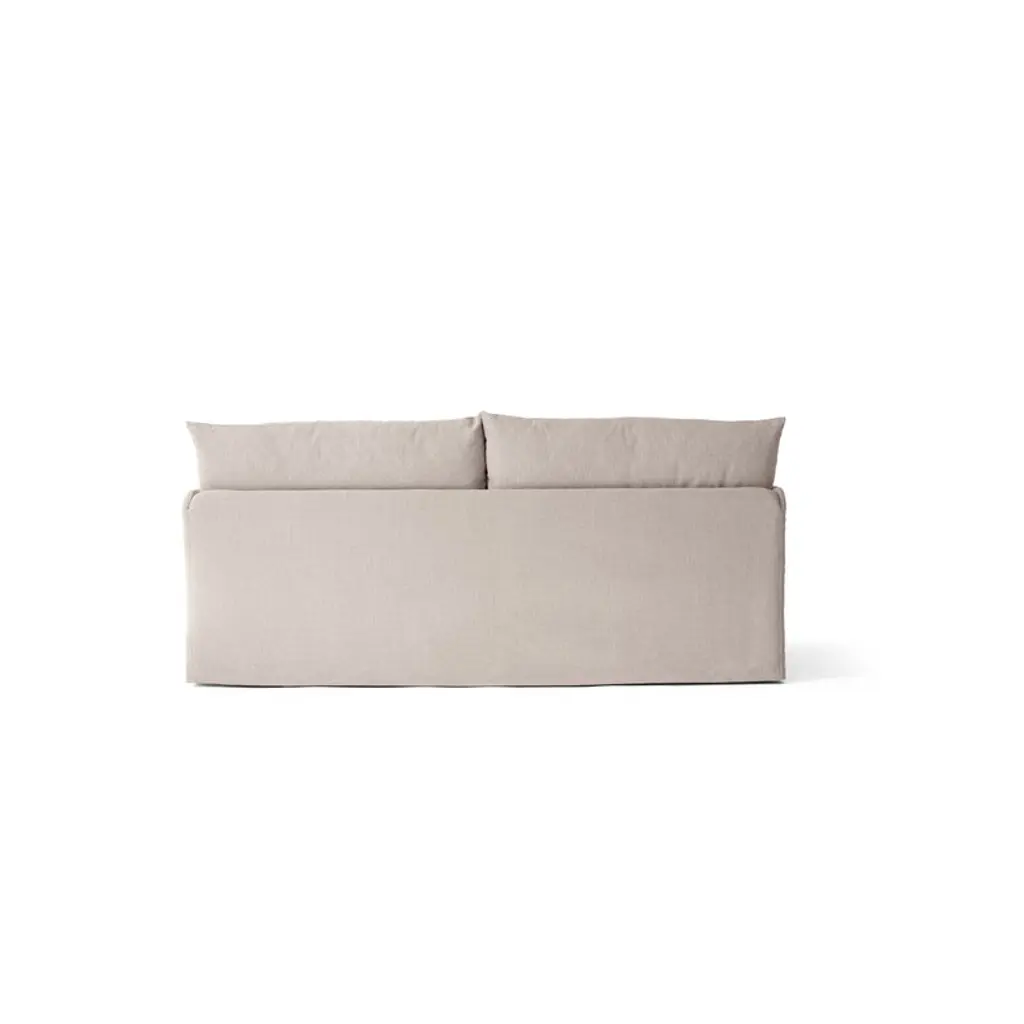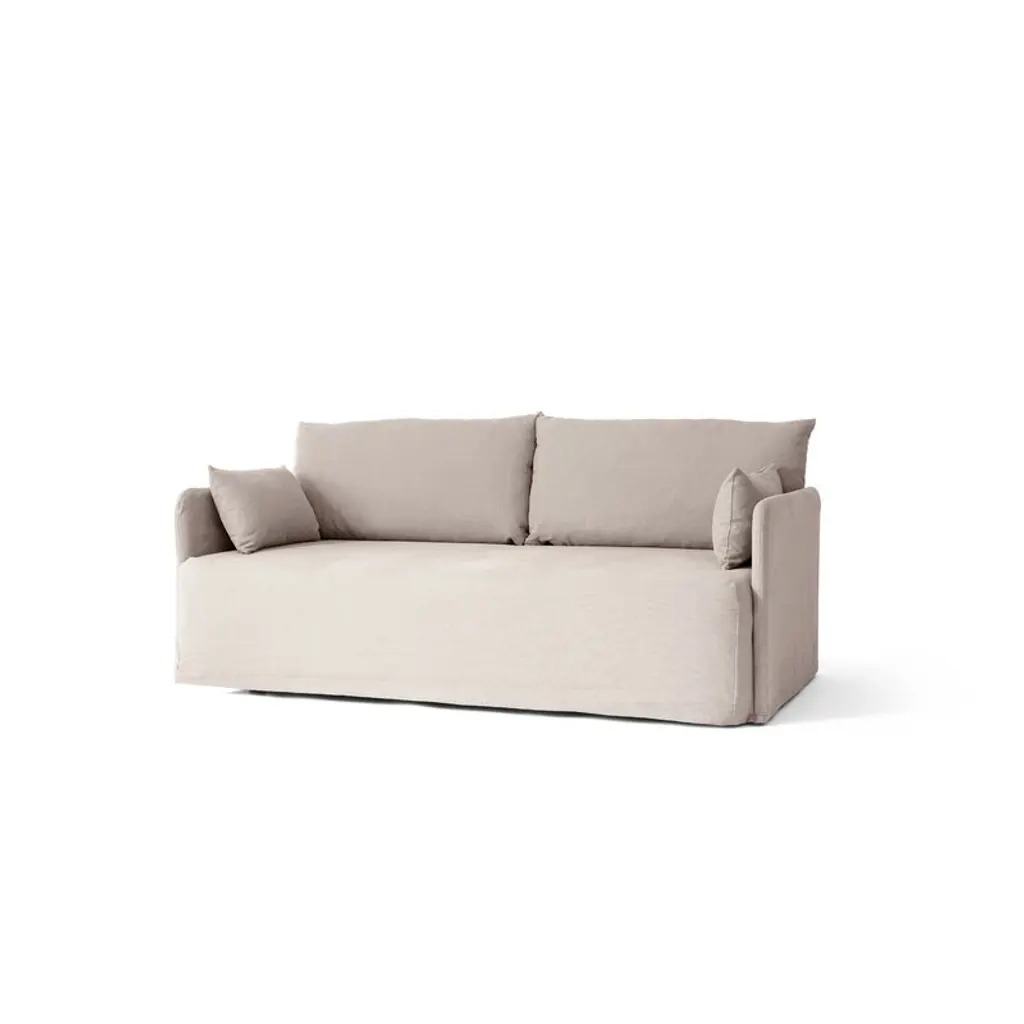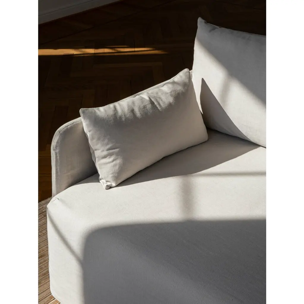 Audo Copenhagen’s Offset 2-seater sofa is Norm Architects’ interpretation of a balance achieved through paradoxes. The sofa boasts a delicate yet substantial expression with an architectural yet cozy feel, and its design combines an inviting, plush seat with narrow armrests and small metal legs. Norm Architects sought inspiration for the silhouettes of the Offset range from minimalist art while still aiming for maximum seating comfort. The Offset 2-seater sofa comes with a detachable and washable loose cover. You can extend the sofa’s lifespan by replacing a worn cover with a new one – and with an extra cover, you can update the look of the sofa whenever you feel like it. The upholstery fabric is made from a beautiful and durable cotton-linen blend, and the soft cushions have been filled with feathers and foam granulate.