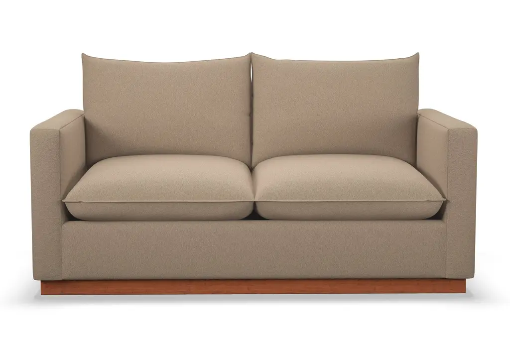 This is it. The Olivia Loveseat is the contemporary sofa we've all been waiting for. It takes the best aspects of previous sofa generations and adds just enough contemporary flair to make it feel fresh, modern, and unique. The first thing you'll notice about the Olivia is its knife-edge cushion covers. The sharp lines created by the pinched, knife-edge detailing gives the Olivia its signature visual profile. Squared off arms, deep seating, and a solid wood base complete the package. If you've been waiting for the next era of sofa design then your wait ends now. The Olivia Loveseat is constructed in our downtown Los Angeles factory (Made in the USA!) and it is built with the utmost care and attention to quality. It features a solid, kiln-dried Alder wood frame, a sinuous spring system in the base, and soft-yet-supportive 2.0 high density foam cushions. All of these high quality components combine to create a sofa that will not only last for years to come, but it will also be comfortable the whole time.