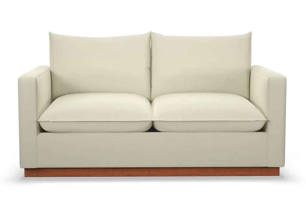This is it. The Olivia Loveseat is the contemporary sofa we've all been waiting for. It takes the best aspects of previous sofa generations and adds just enough contemporary flair to make it feel fresh, modern, and unique. The first thing you'll notice about the Olivia is its knife-edge cushion covers. The sharp lines created by the pinched, knife-edge detailing gives the Olivia its signature visual profile. Squared off arms, deep seating, and a solid wood base complete the package. If you've been waiting for the next era of sofa design then your wait ends now. The Olivia Loveseat is constructed in our downtown Los Angeles factory (Made in the USA!) and it is built with the utmost care and attention to quality. It features a solid, kiln-dried Alder wood frame, a sinuous spring system in the base, and soft-yet-supportive 2.0 high density foam cushions. All of these high quality components combine to create a sofa that will not only last for years to come, but it will also be comfortable the whole time.