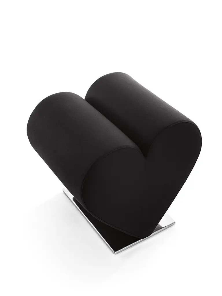 Love is an iconic and scenographic padded chair: designed by Joel Escalona, it evokes the works of the masters of pop art Andy Warhol and Keith Haring. A comfortable heart, an ironic pouf that add warmth whichever environment it is placed in. It creates an atmosphere in the bedroom, provides informality to an entrance, adds an alternative touch to an austere sitting room, decorates a teenager’s bedroom, but also gives originality to formal environments thanks to its bubbly personality and its simple but evocative shape.Made in soft polyurethane foam, the Love pouf is coated in completely removable black or red Kvadrat fabric.