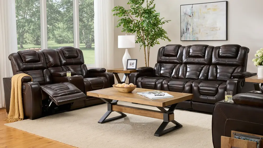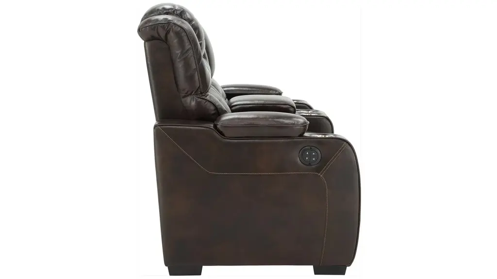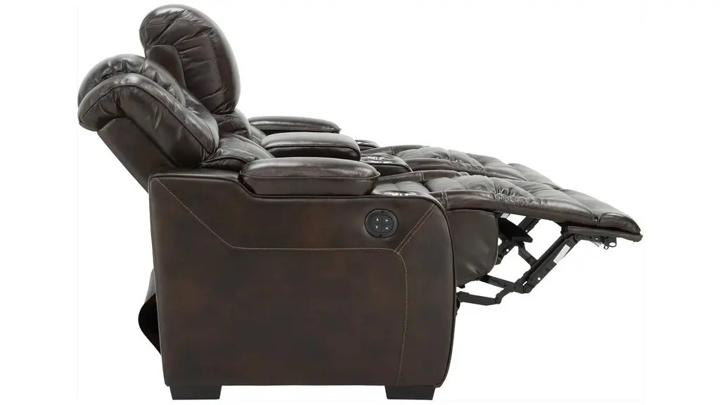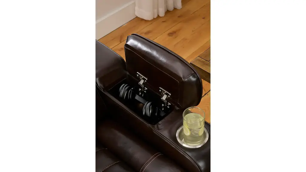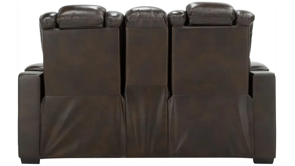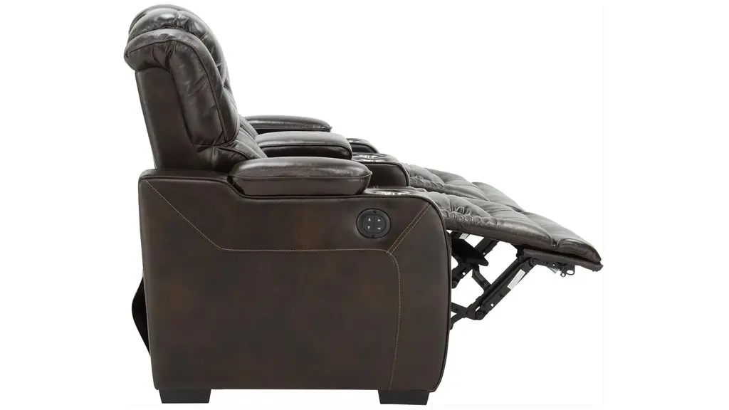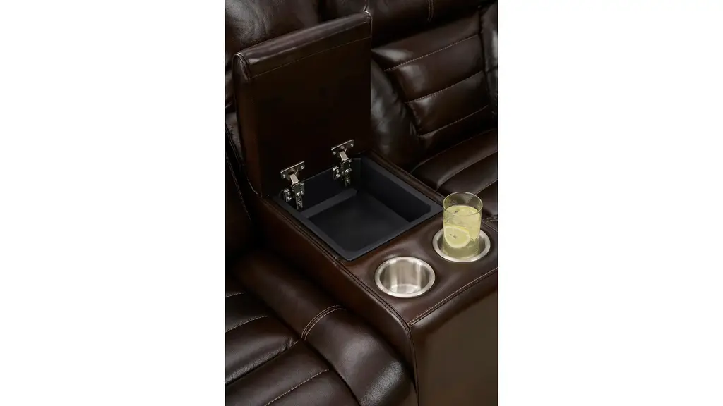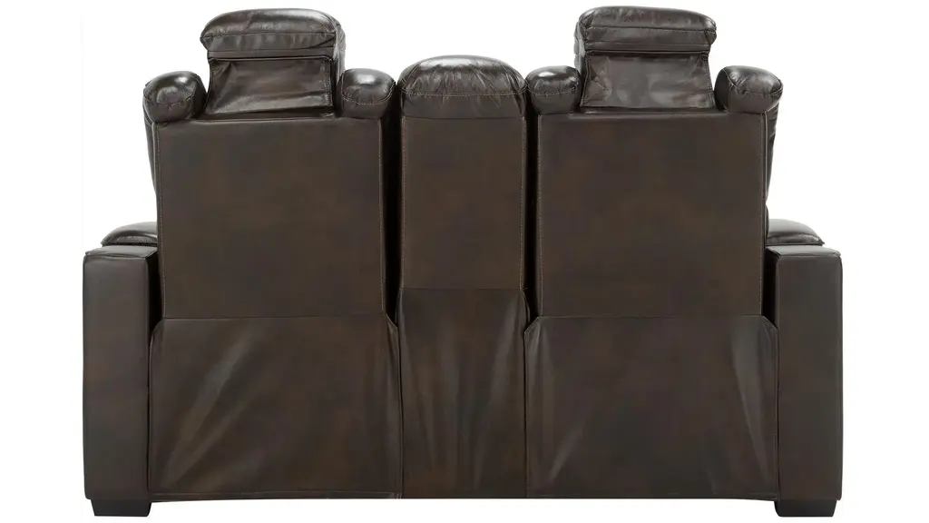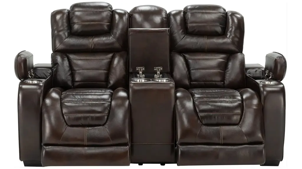 Confident in design and crafted for comfort, the Othello dual power console loveseat lives up to its name. Upholstered in supple leather, it invites you to relax in style. Power reclining seats and adjustable headrests offer virtually infinite positions, allowing you to tailor your comfort with ease. Thoughtful details like the center console and hidden storage built into the armrests add discreet functionality.