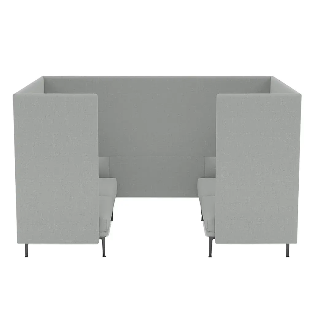 Cabin brings the ultimate expression of the Outline Highback family designed to create an elevated sense of focus and immersion within a larger space—here in the 2 options for a smaller version. Within its clean-lined confines, choose from upholstery in a range of materials and the option of a black-lacquer work table for the enveloping acoustic and spatial enclosure, ideal for work in solitude or collaboration in a group session.